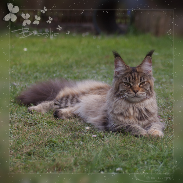 Brasilia sitzt unter dem Außenkratzbaum.