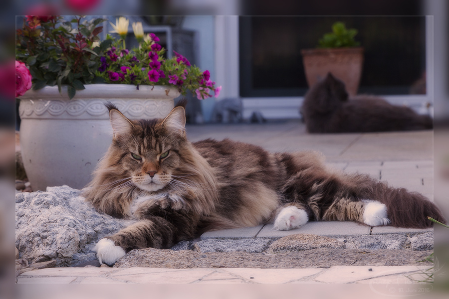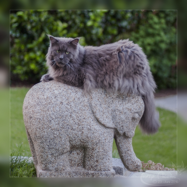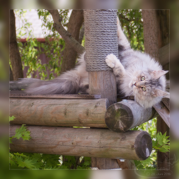 Cecil auf unserem Gartenkratzbaum