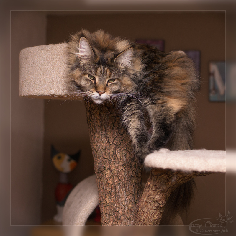 Ricki hat den Kratzbaum im Wohnzimmer "erobert".