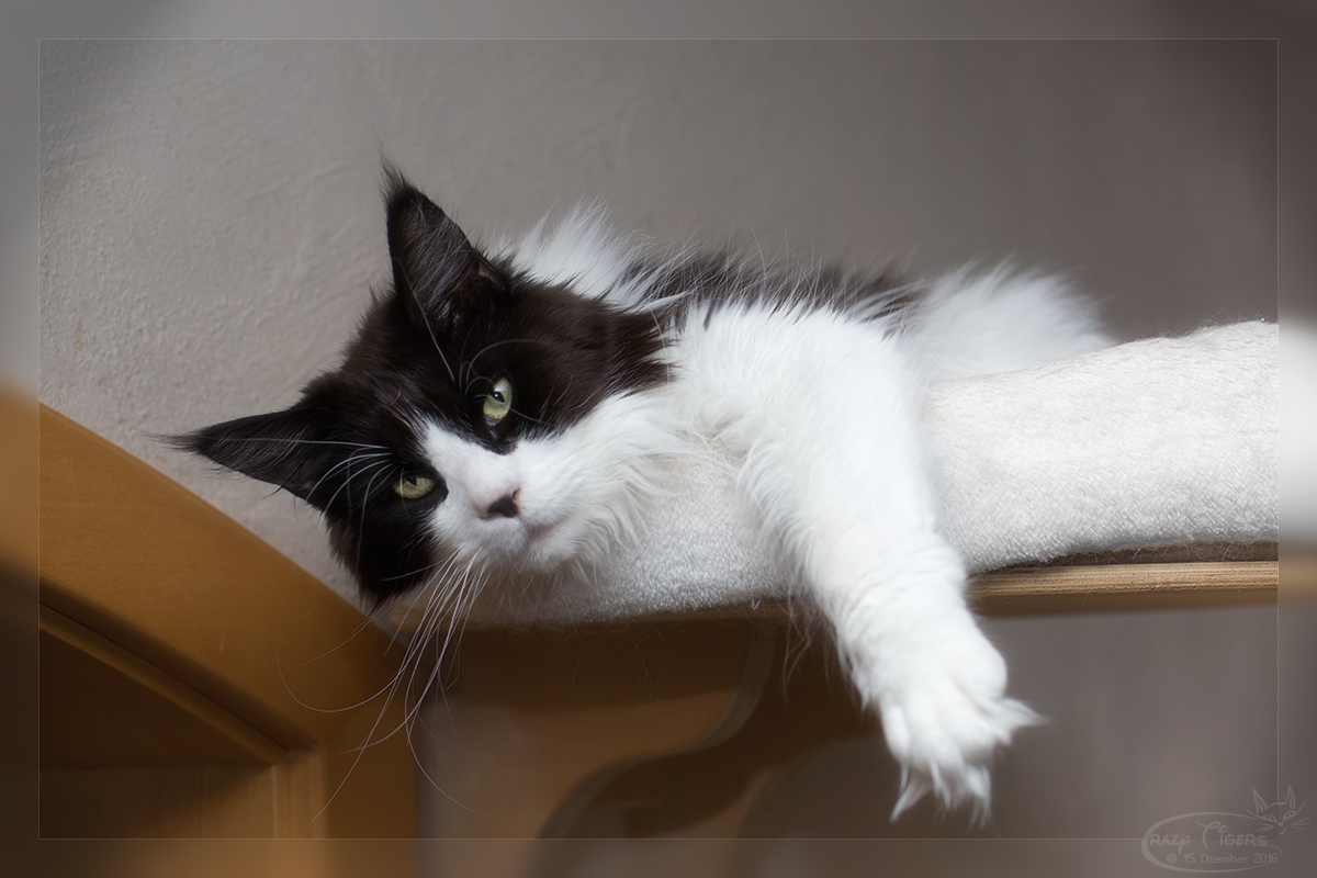 Overdress in der Kratzbaumliege und ein erster Schnappschuß vom Neuzugang