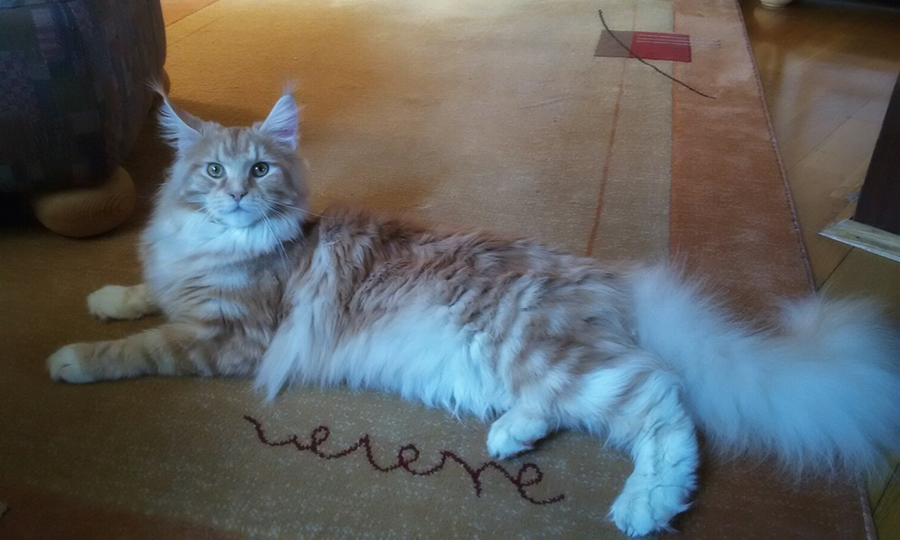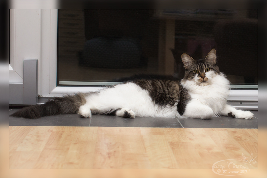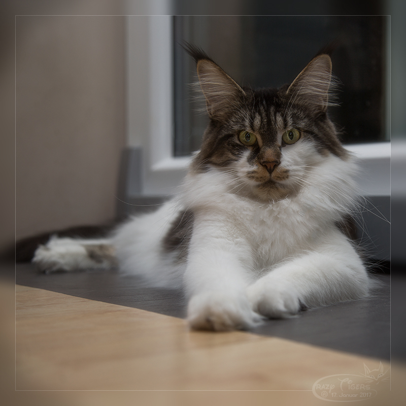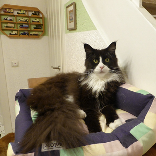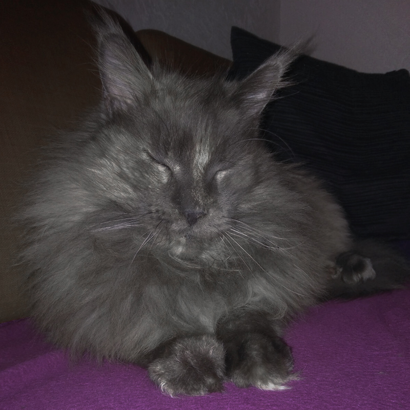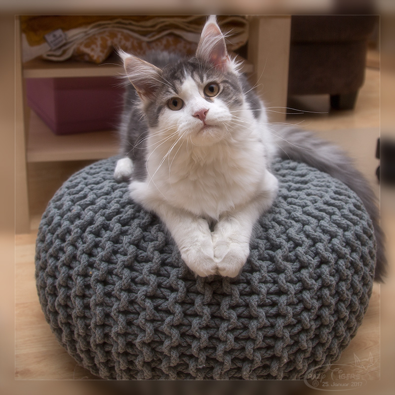 Ricki (Reykiavik Vivacoon) hat es sich auf dem Sitzsack gemütlich gemacht.