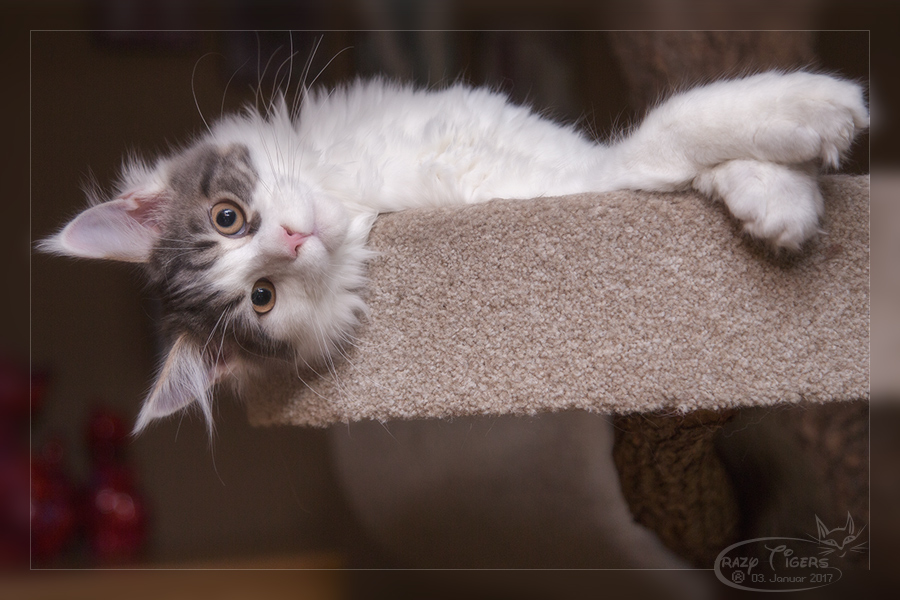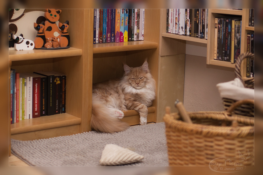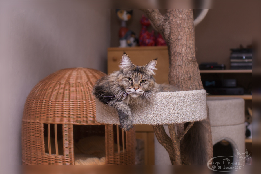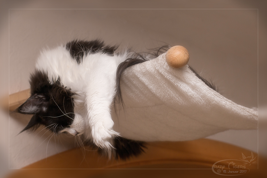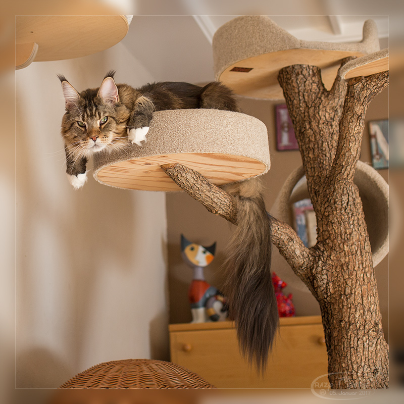 Henri auf dem Wohnzimmer-Kratzbaum.