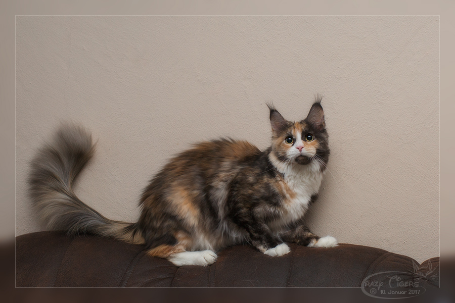 China Girl sprungbereit auf der Couchlehne.