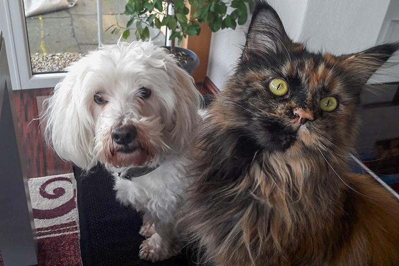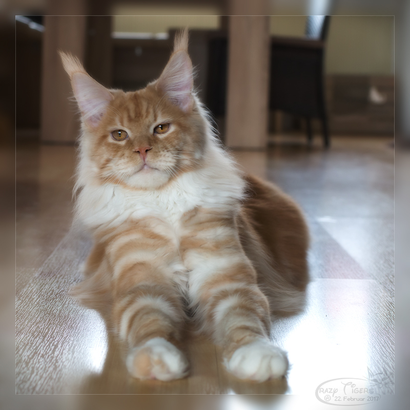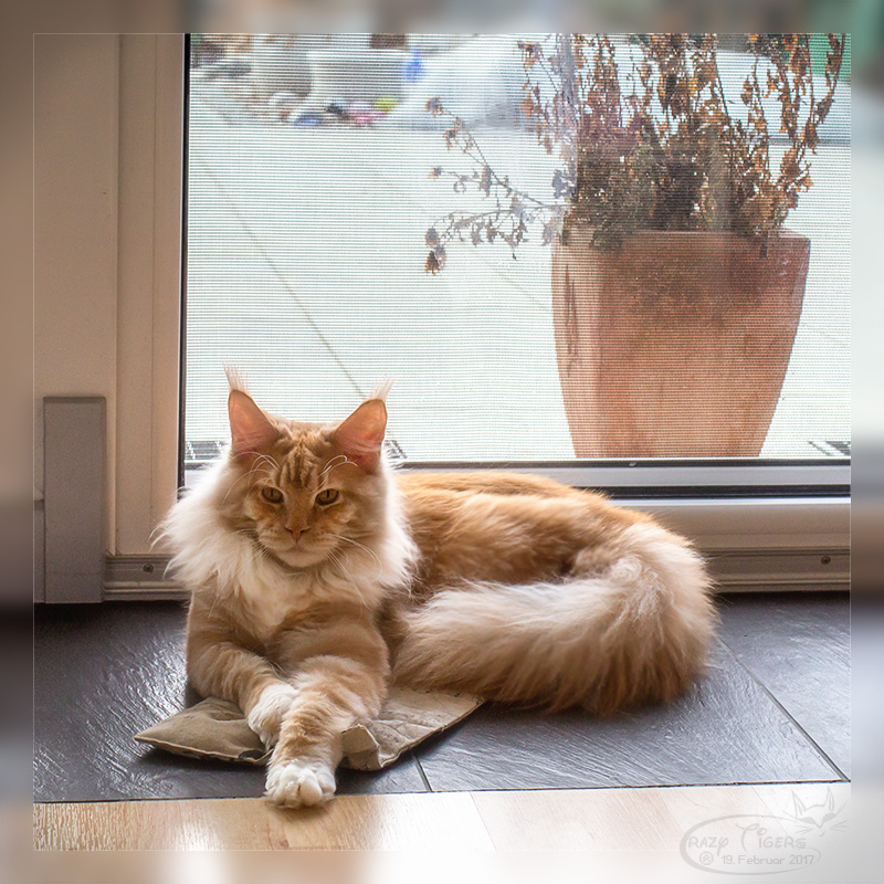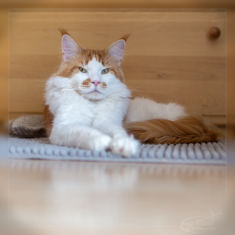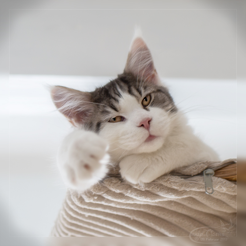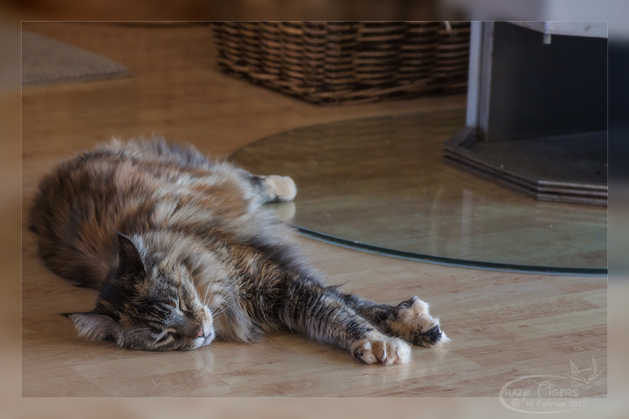 Edoardo streckt seine Pfoten mächtig nach vorne.