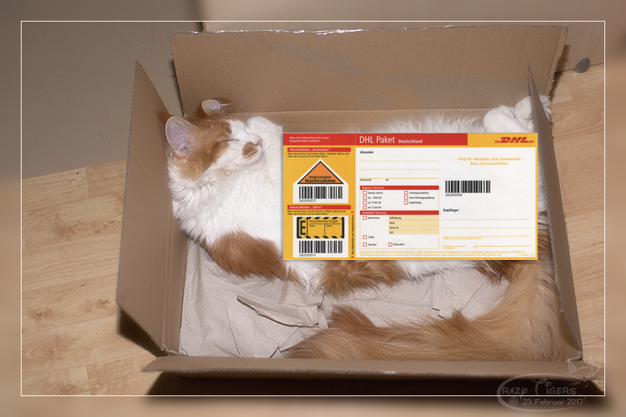 Paket ist fertig zum Versand - Adriano hat sich passend eingeschlängeld.
