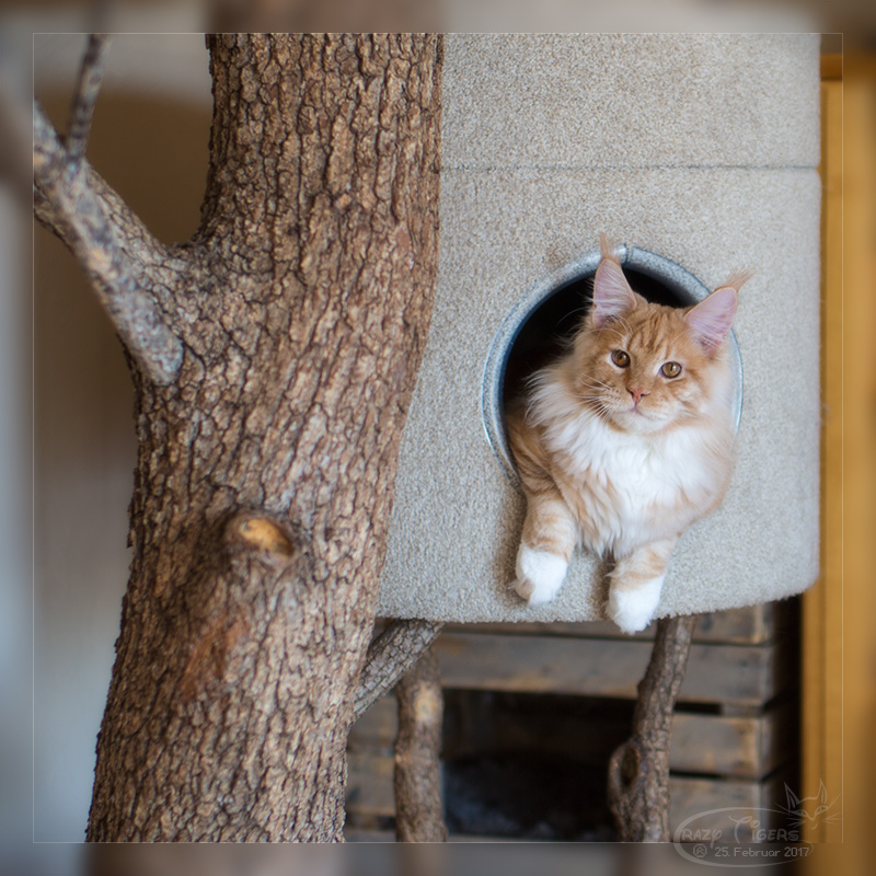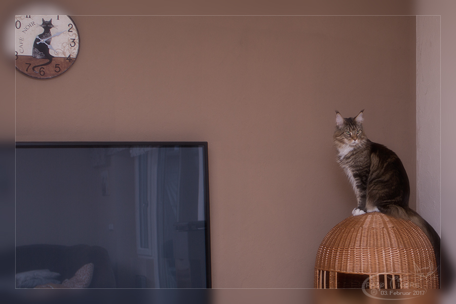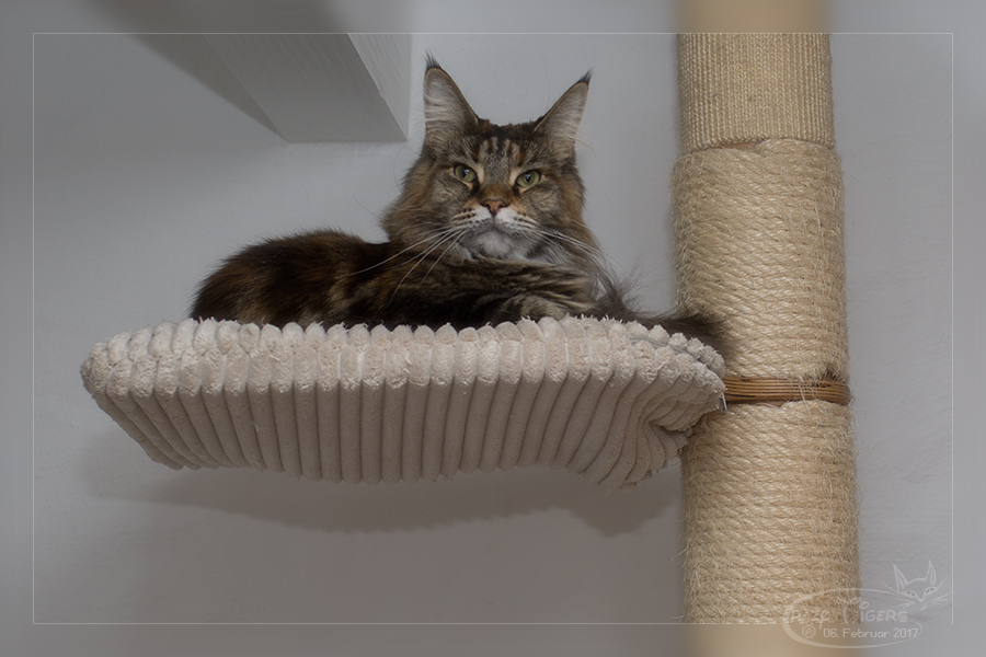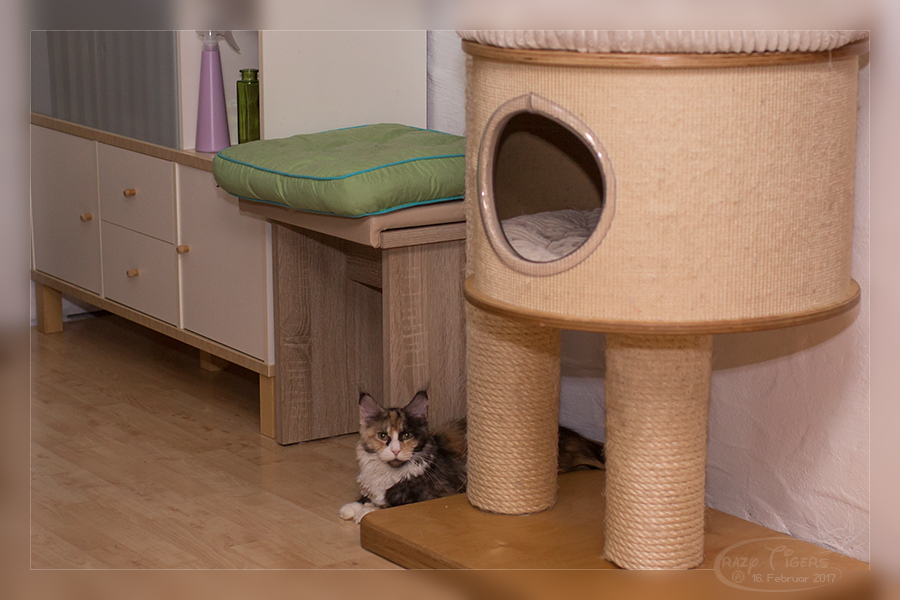 Cecil zunächst die oberste Liege des Kratzbaums.