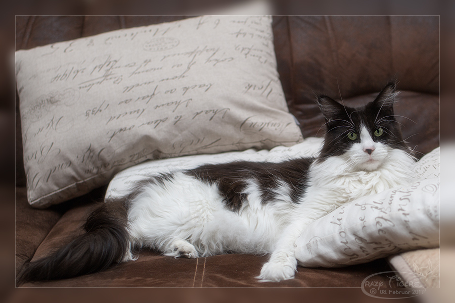 Edoardo hat sich mit einem Stinkekissen ein Ruheplätzchen gesucht.