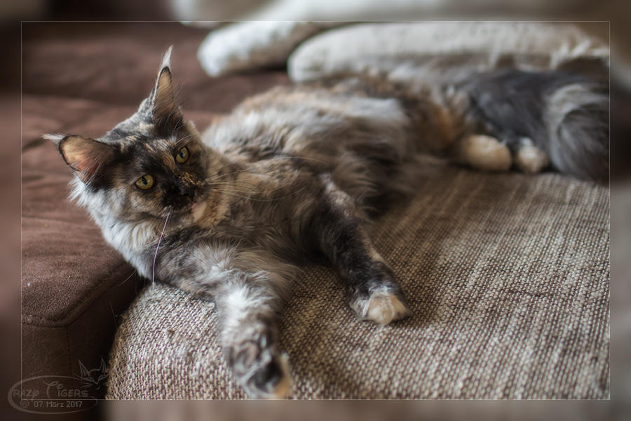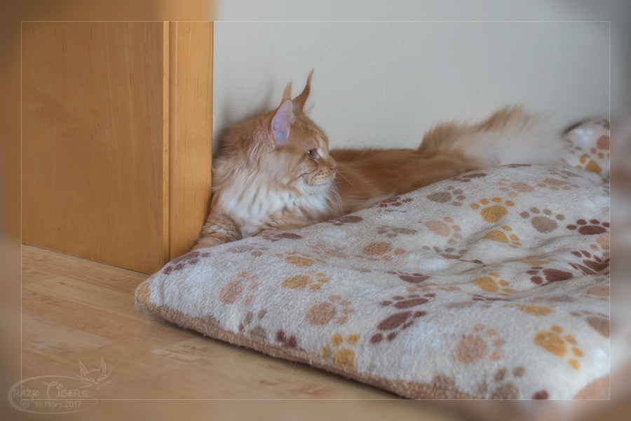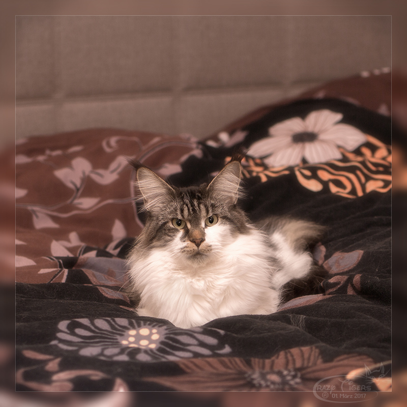 Zucca hat sich auf der Bettdecke "breit gemacht". Monat Februar ist archiviert.