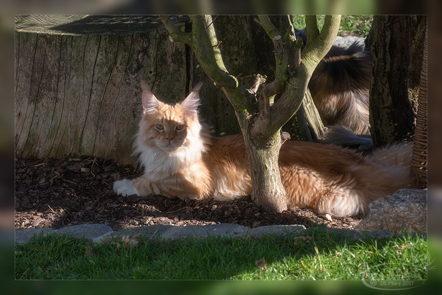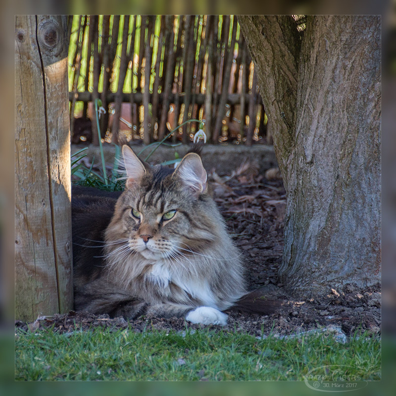 Heute ein herrlicher Frühlingstag und Freigang für unsere Katzentruppe. Edi macht ein Nickerchen im Steinkraut und