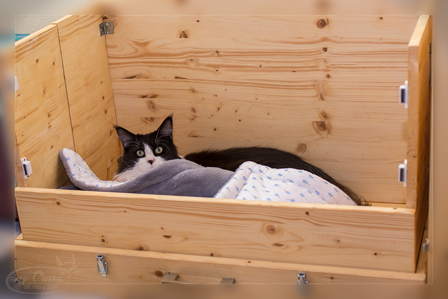 I'Xi-Mädi hat zwar noch Zeit, aber macht es sich jetzt schon in der Wurfbox gemütlich.