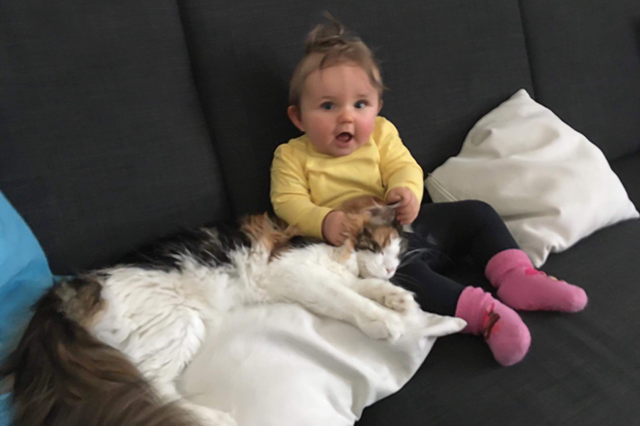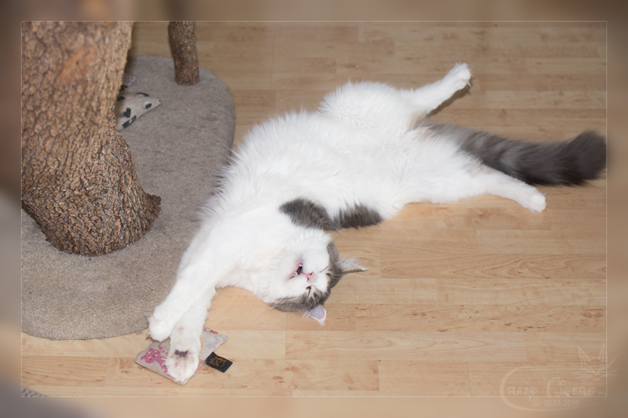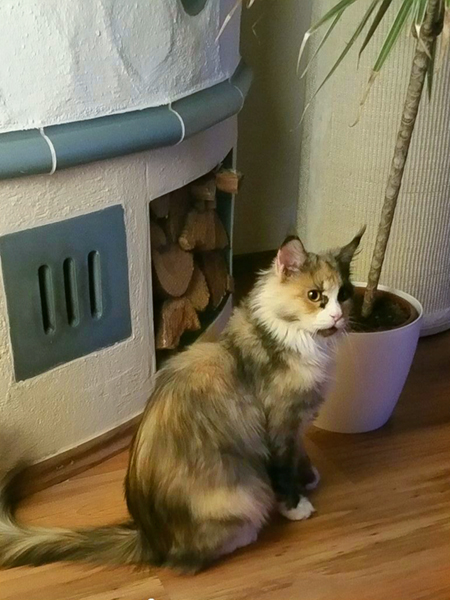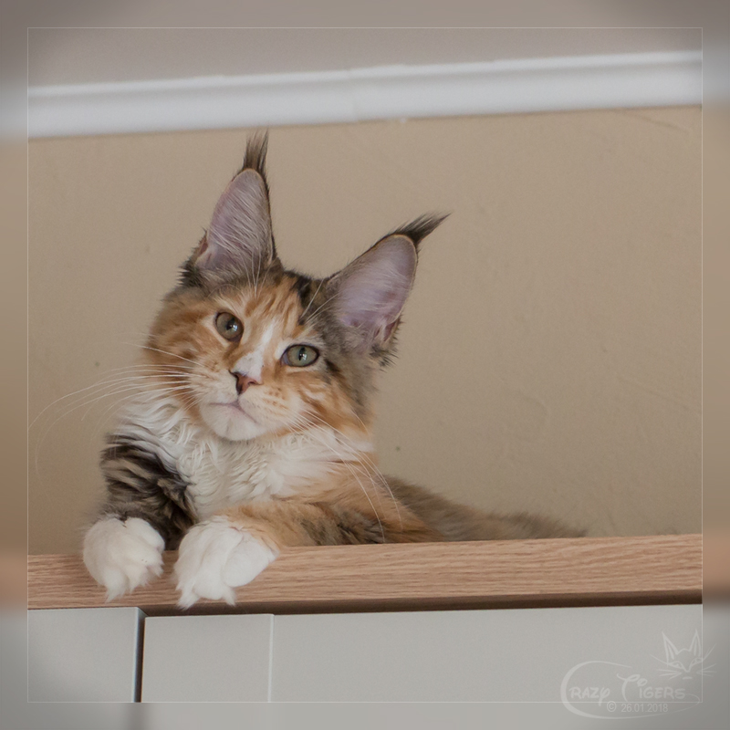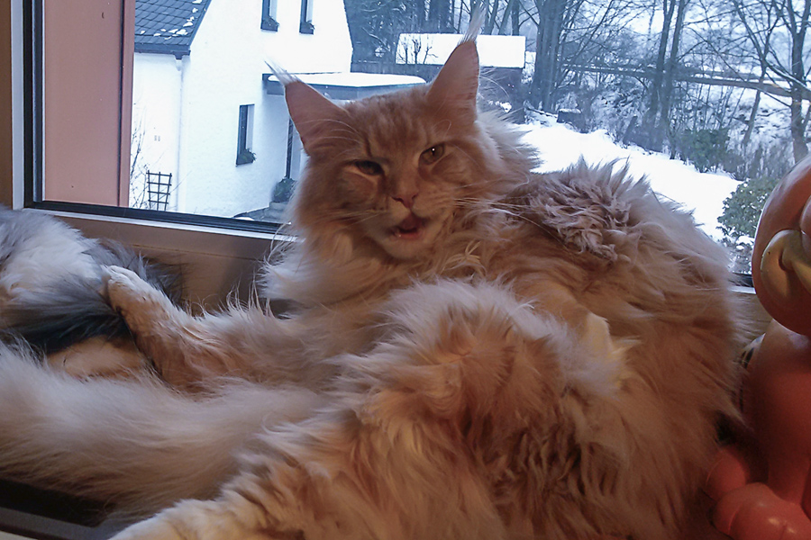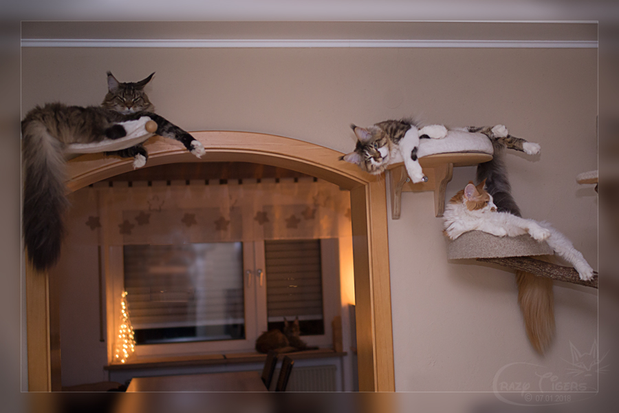 Hanny auf der höchsten Schrankseite im Wohnzimmer.