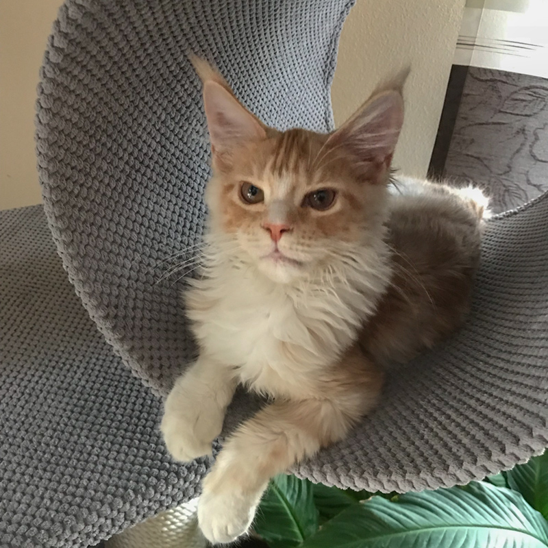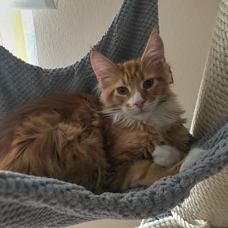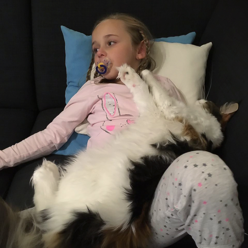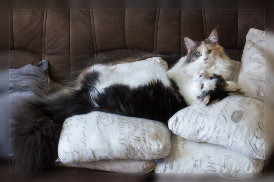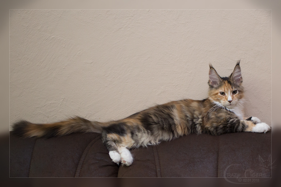 Hanny liegt cool auf der Wohnzimmercouch. Die