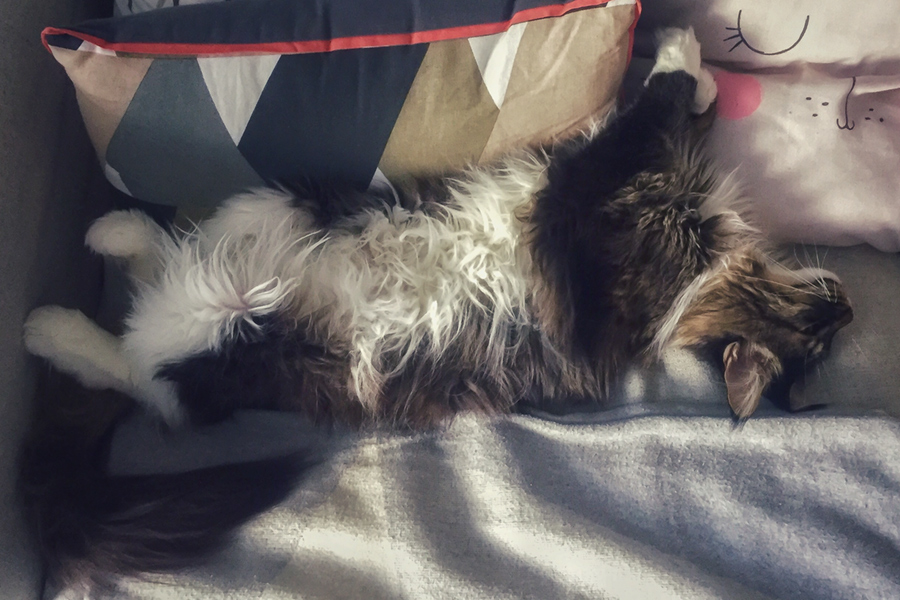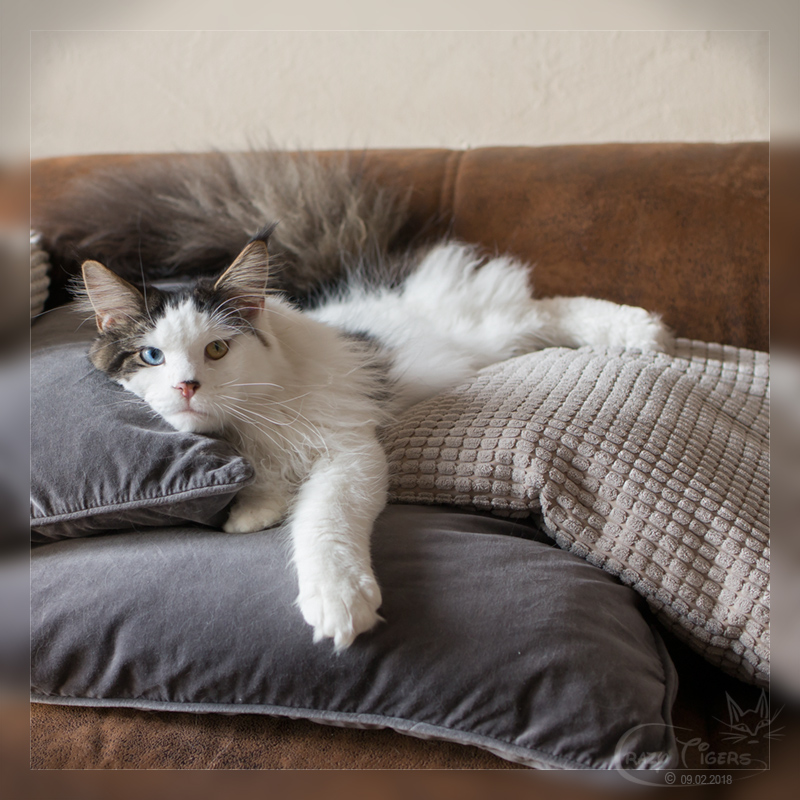 Hanny "macht sich lang" auf der Wohnzimmercouch.