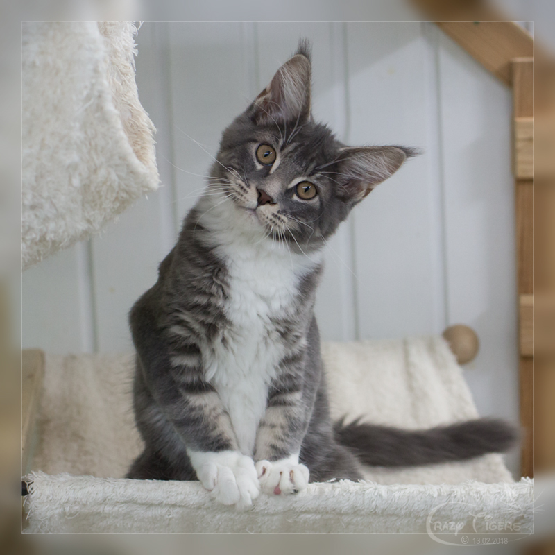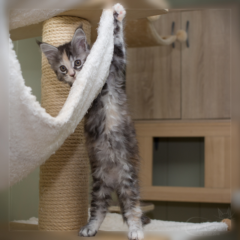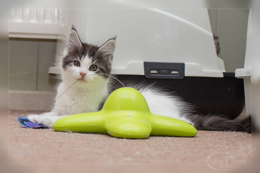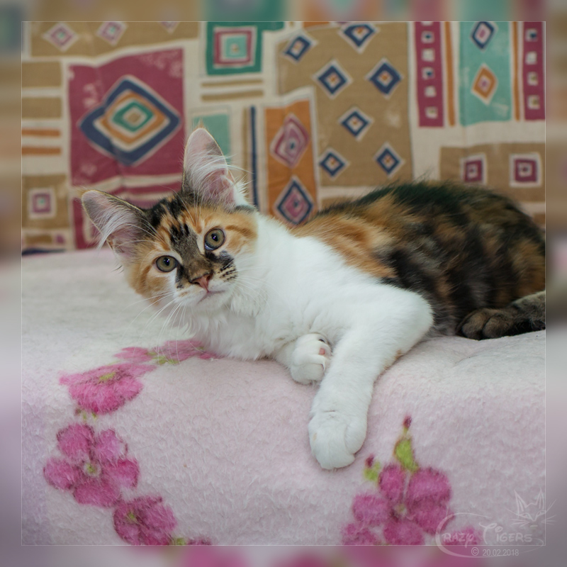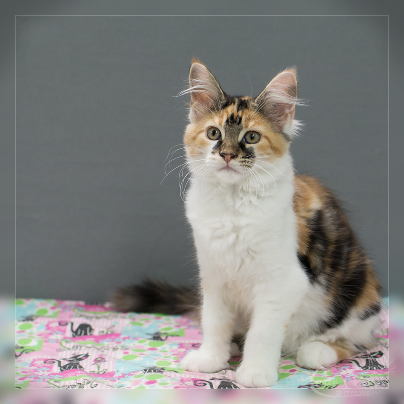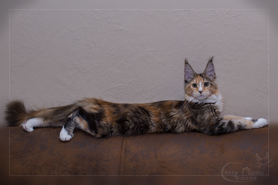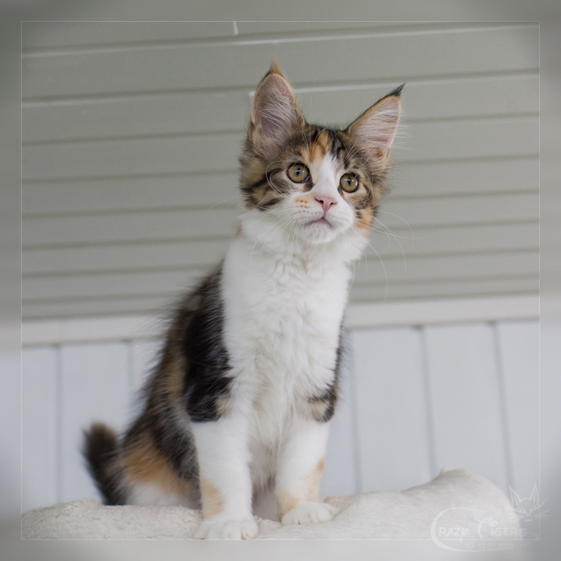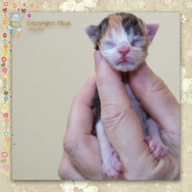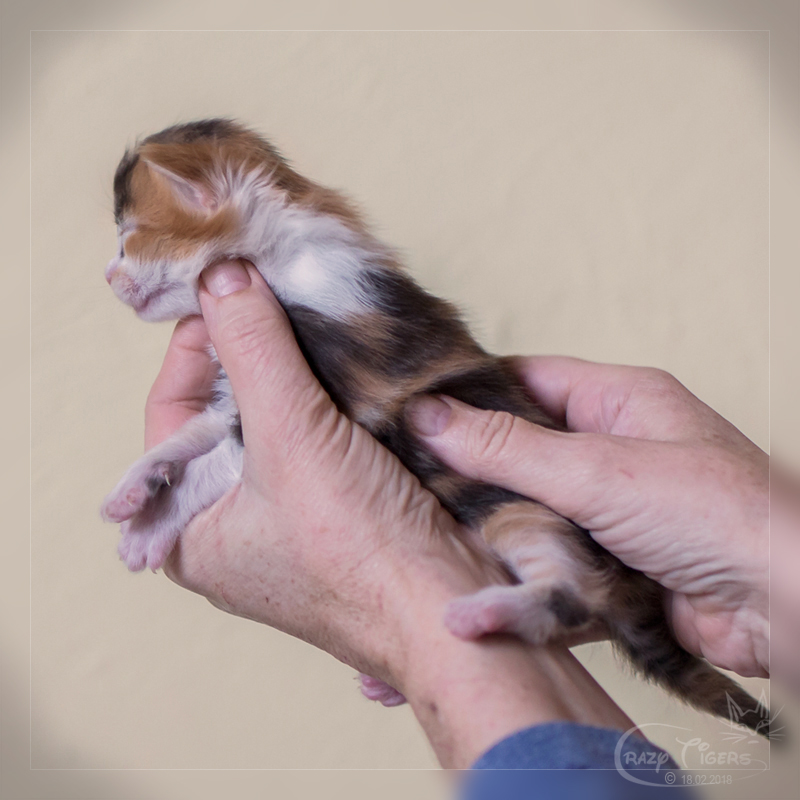 Unser black torbie white Mädchen von Cecil & Ricki - Katana 14,5 Wochen alt.