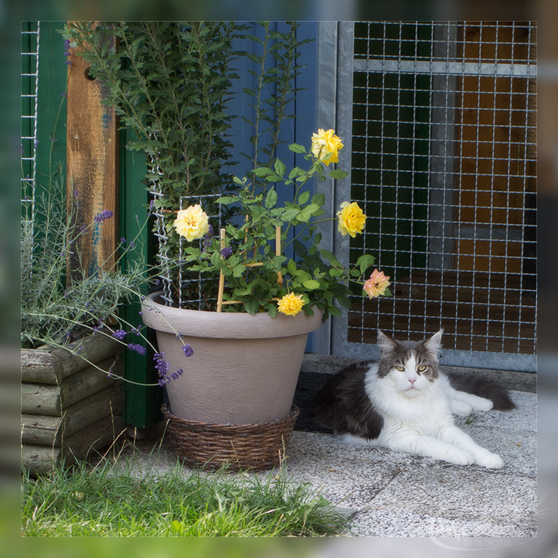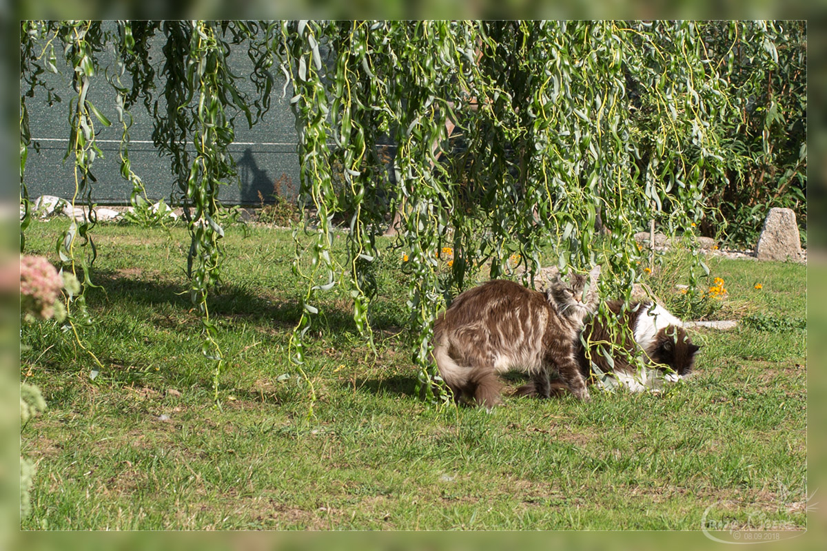 Schönes und warmes Wetter heute mit zwei Bildern von Jamie im Garten -