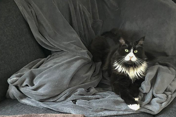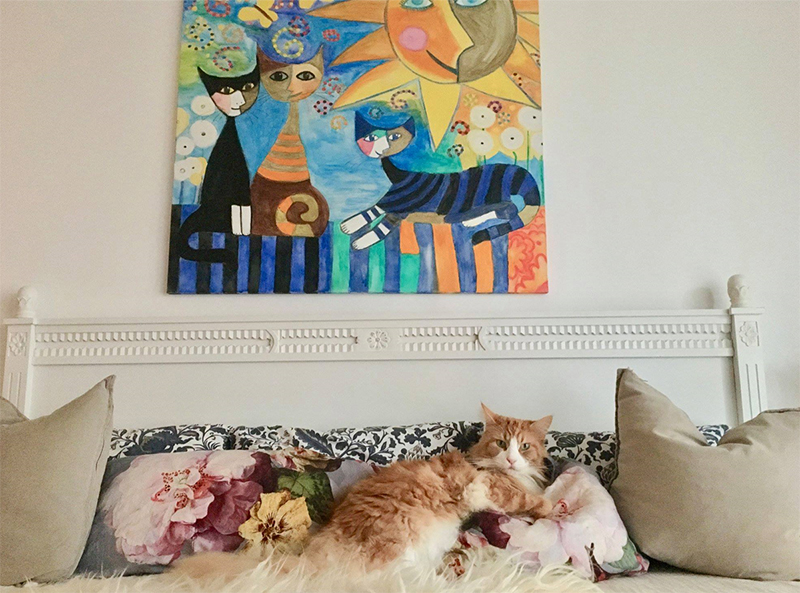 Olivia auf der Couch im Kittenzimmer.