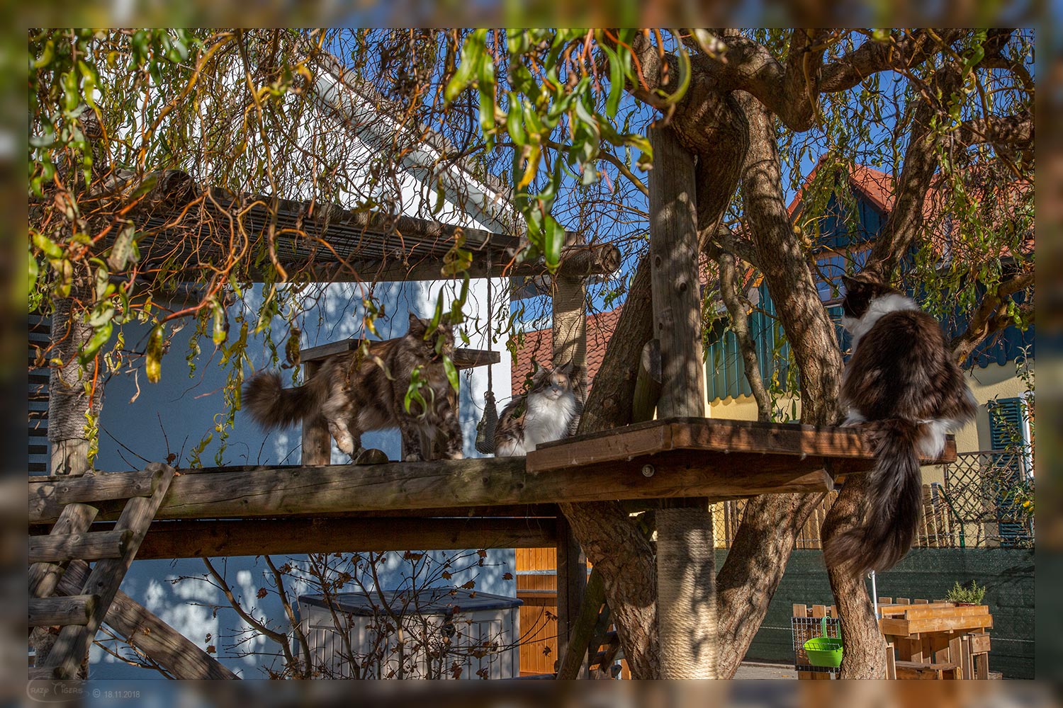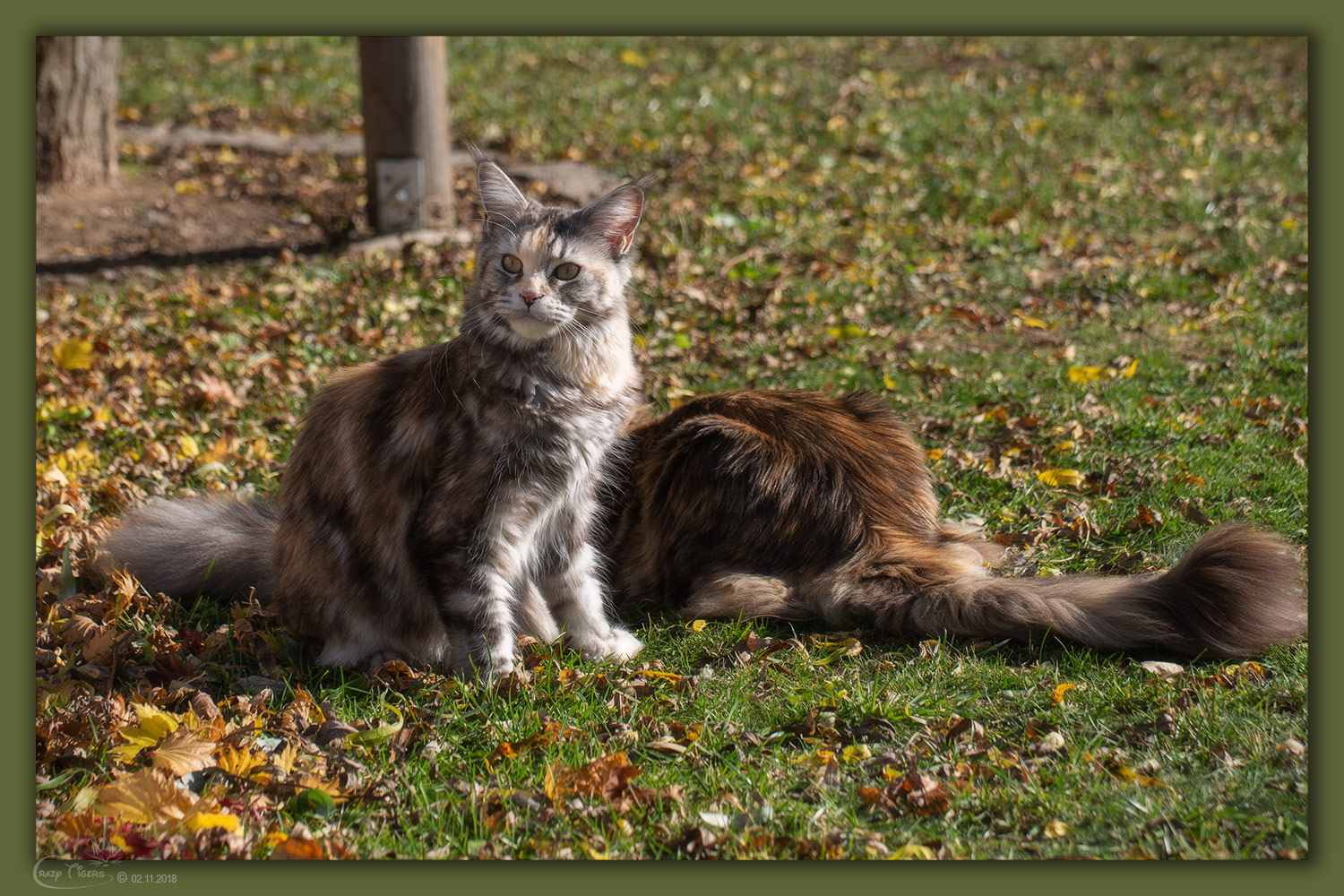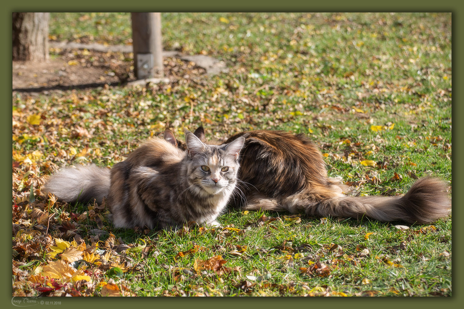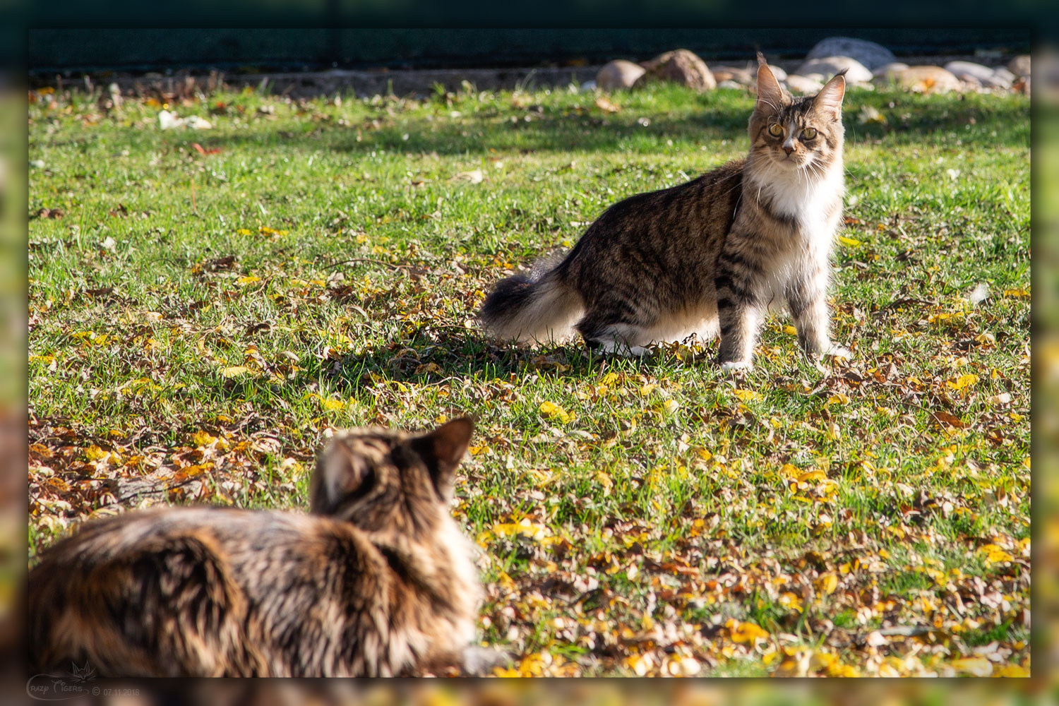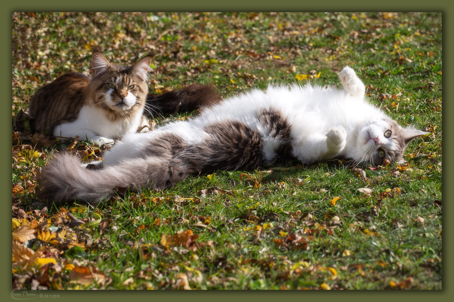 Das sonnige Herbstwetter liebt auch unsere Katzenbande - Fabio und Campari wühlen im Laub.