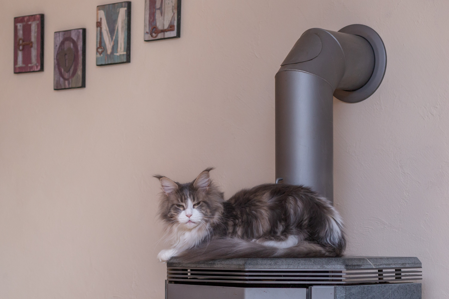 Spät abends hat der Ofen noch Restwärme - gerade richtig für ein mollig warmes Schlummerchen von