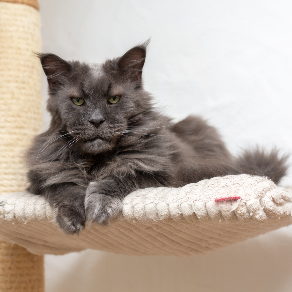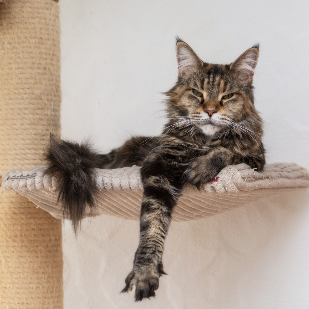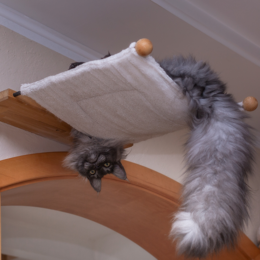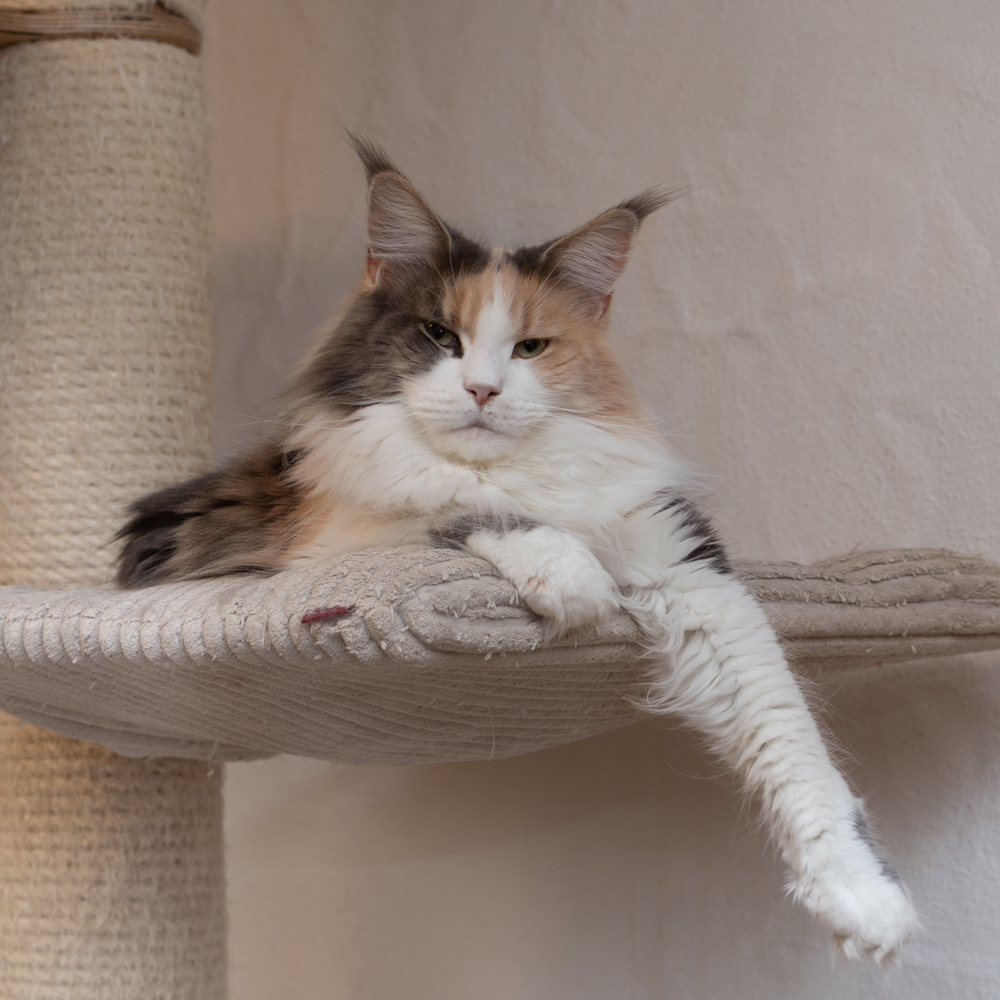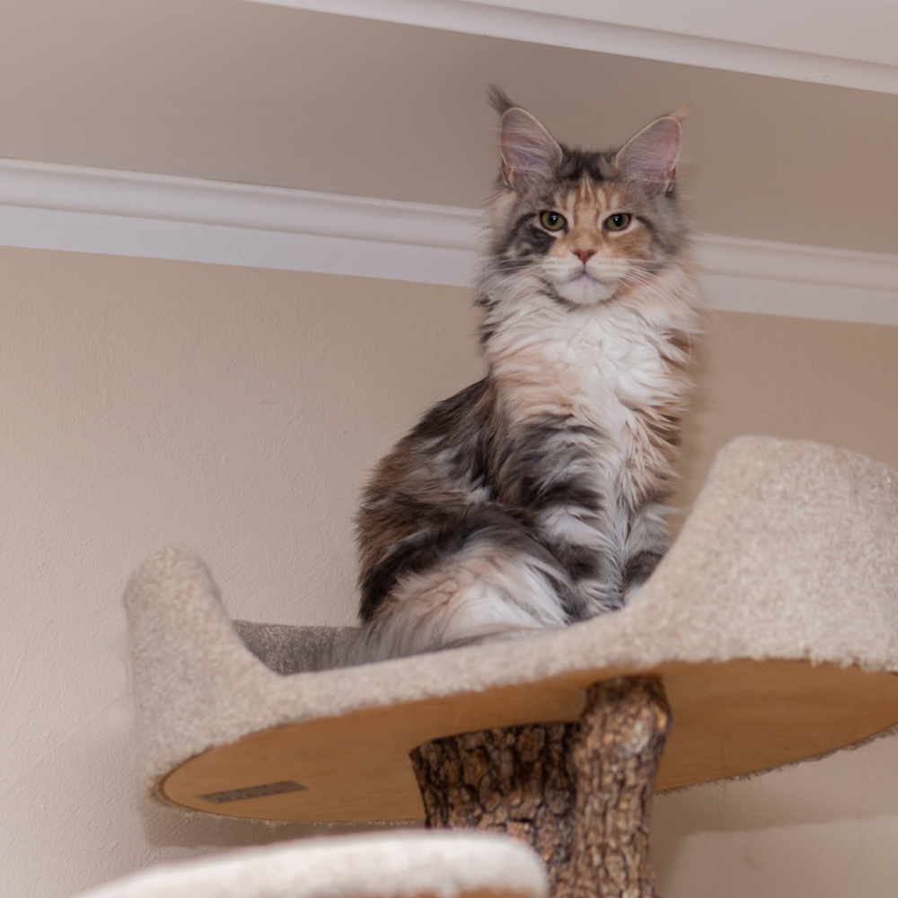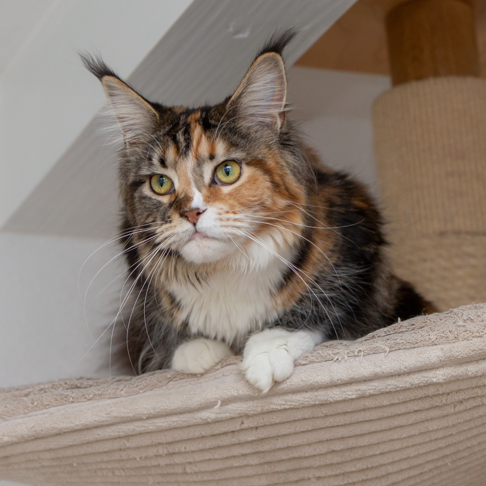 Zitronella ganz oben auf dem Kratzbaum im Wohnzimmer.