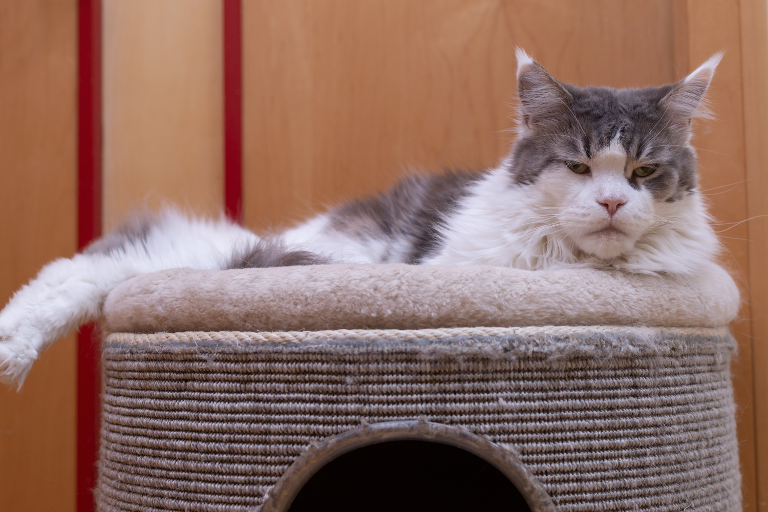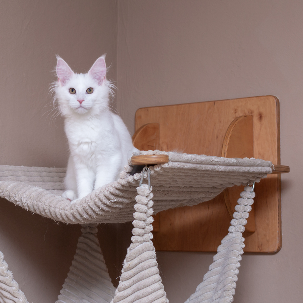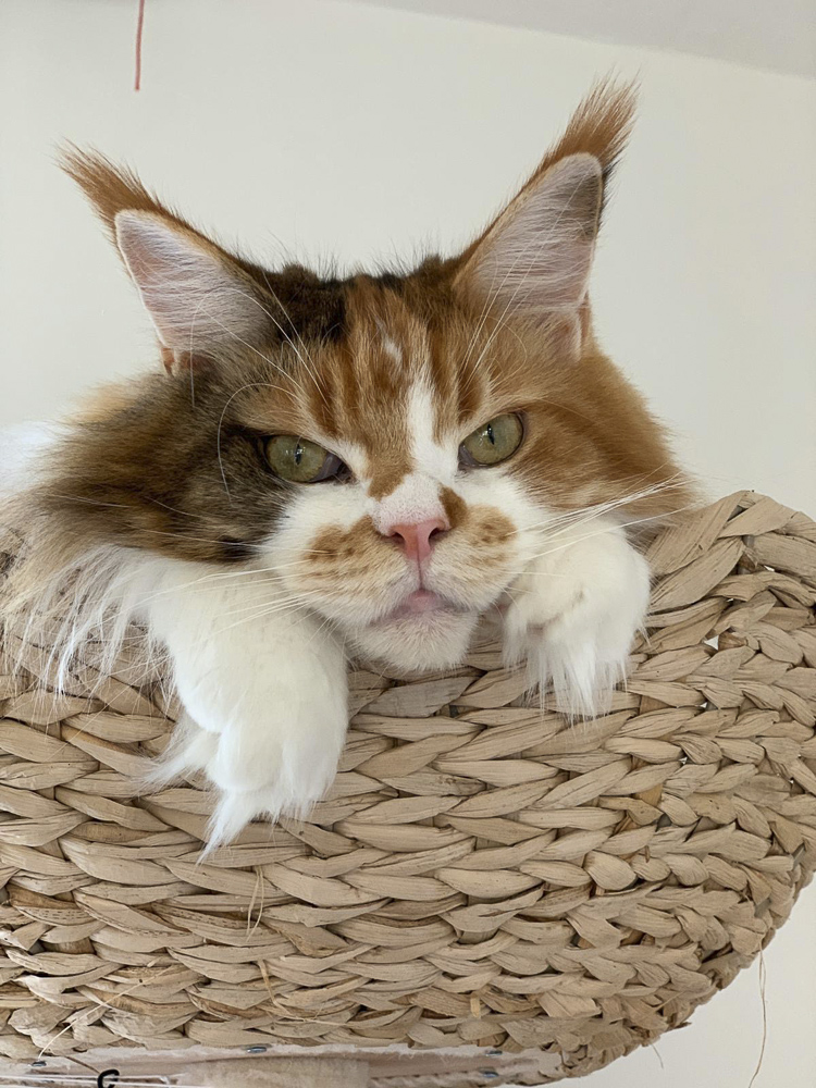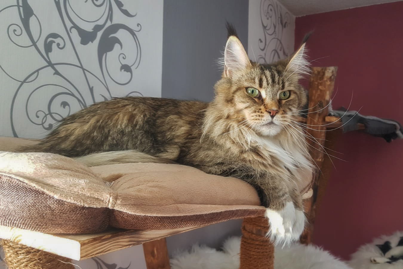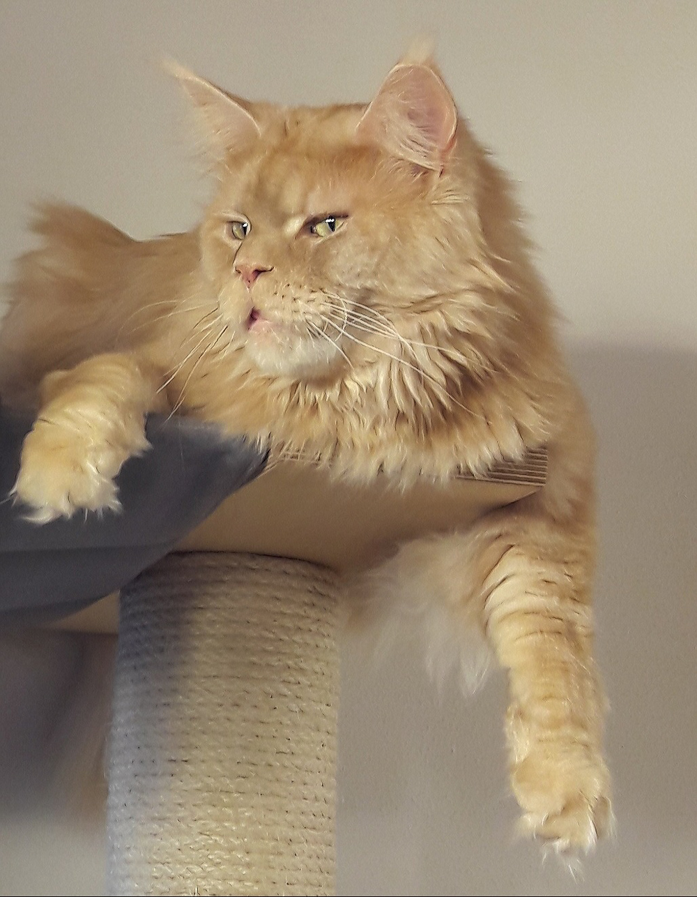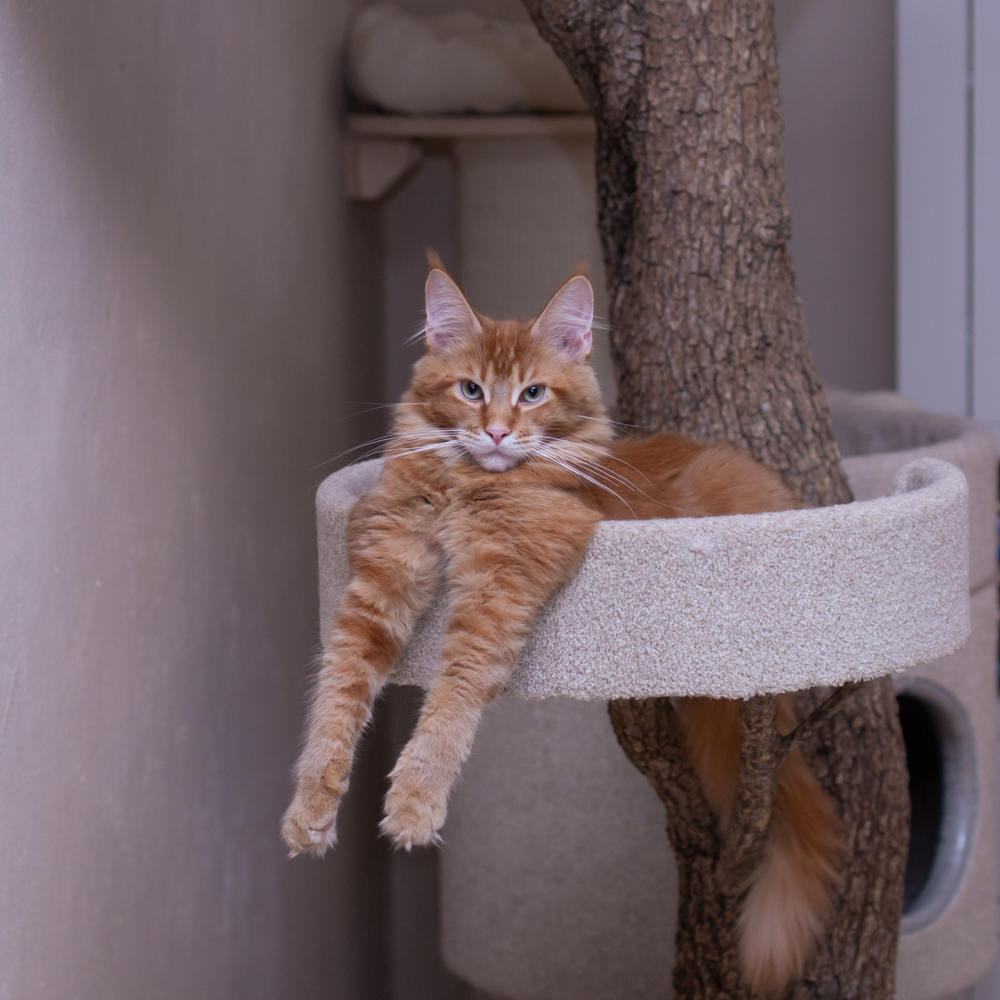 Zitronella ganz oben auf dem Kratzbaum im Wohnzimmer.