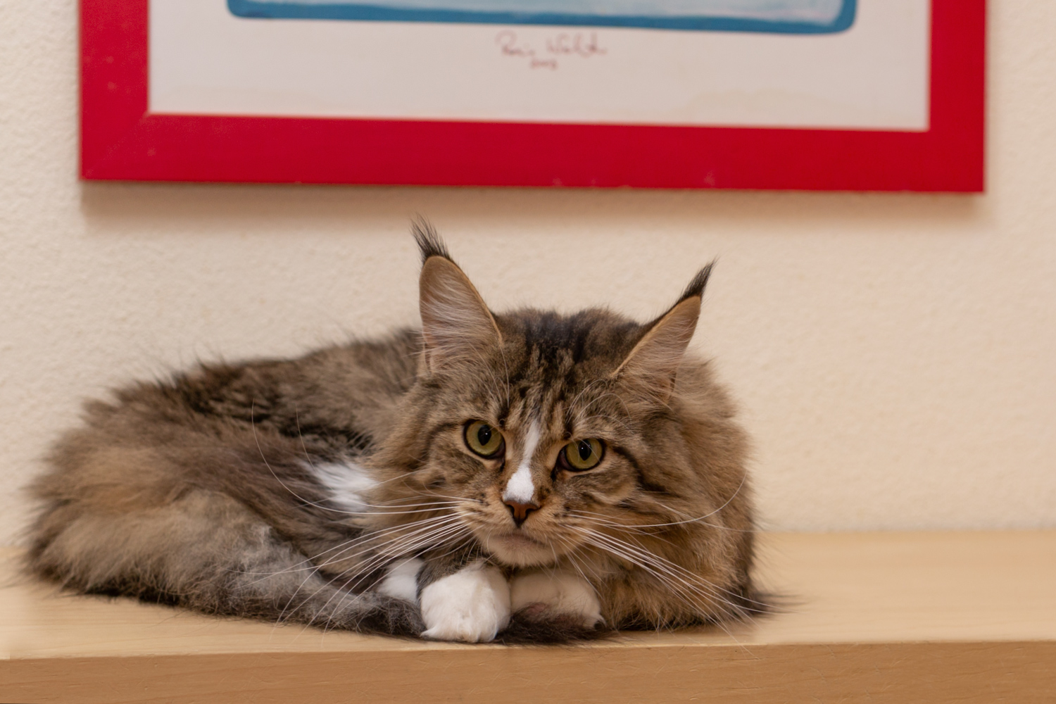 Ricki liegt auf der Kratztonne im Hausgang.