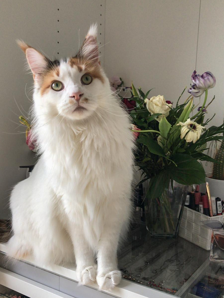 Holly wie ein Model auf dem Sideboard im Eßzimmer.