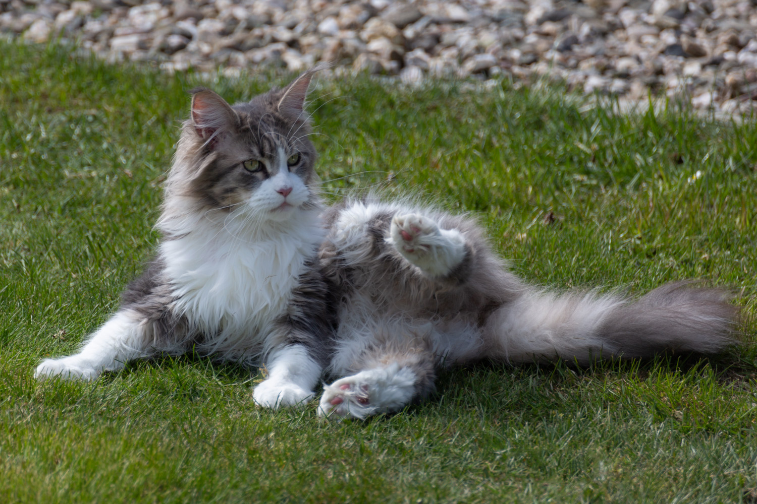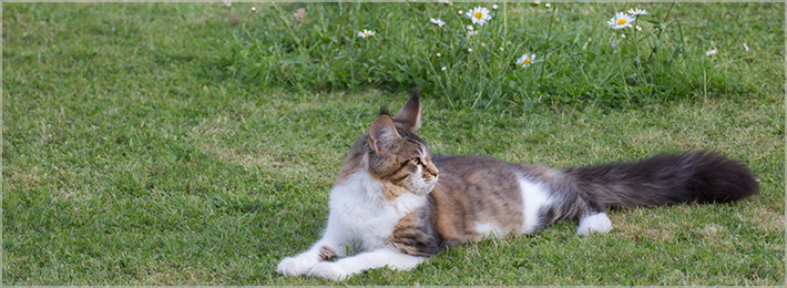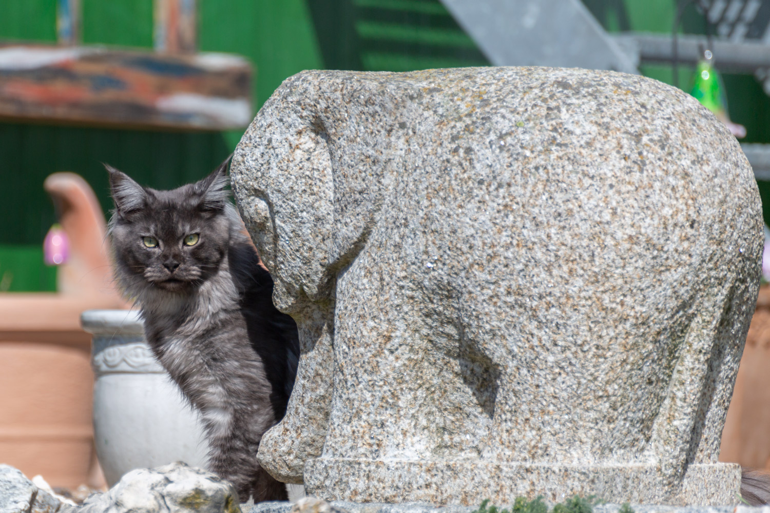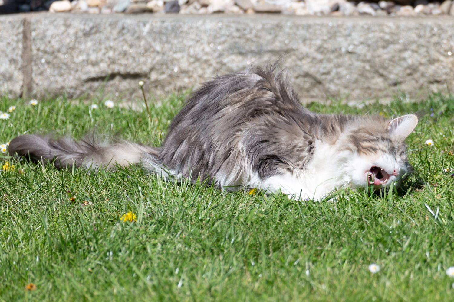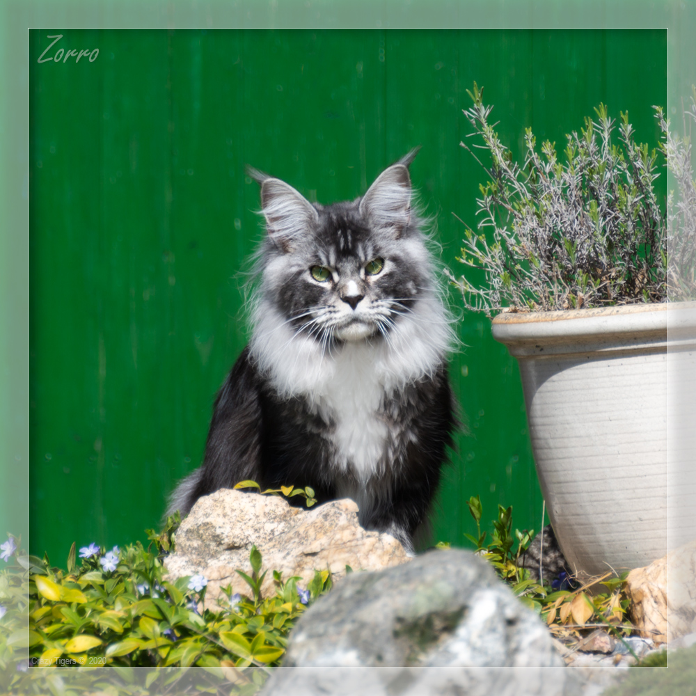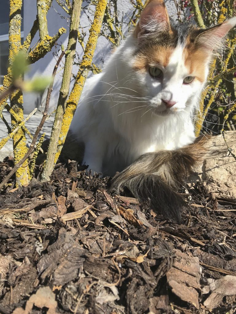 Zorro sonnt sich im Steingarten.