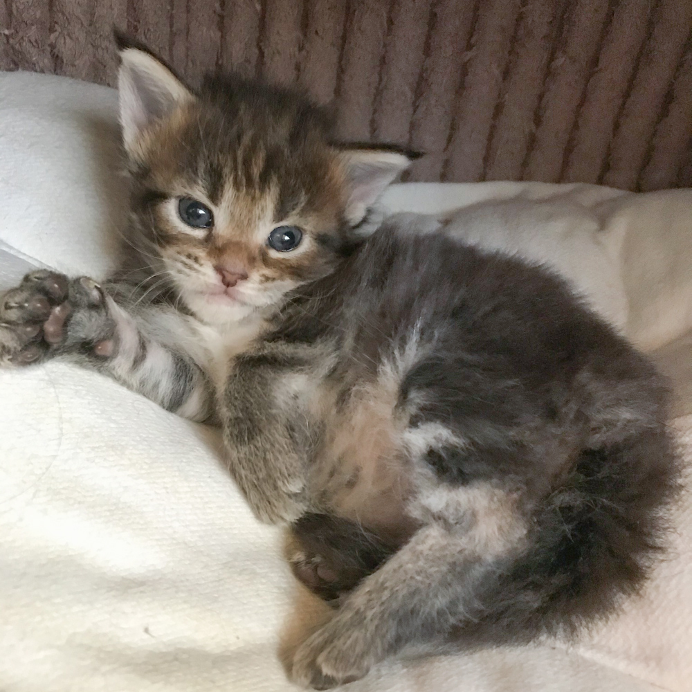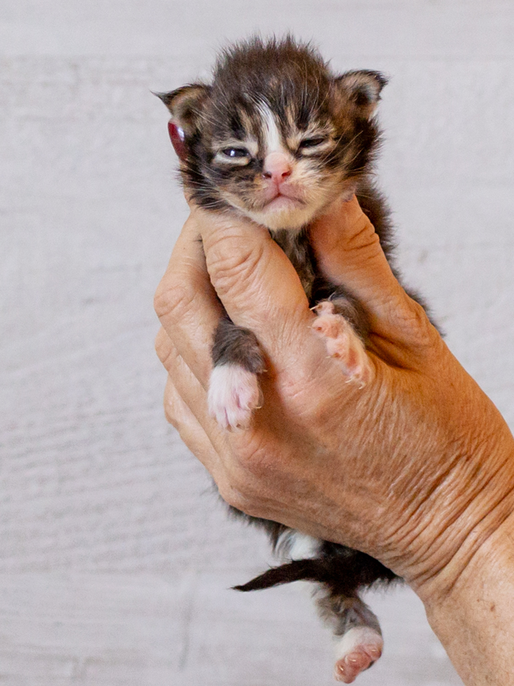 Barny, der black tabby white Boy im B-Wurf ist 1 Woche alt.