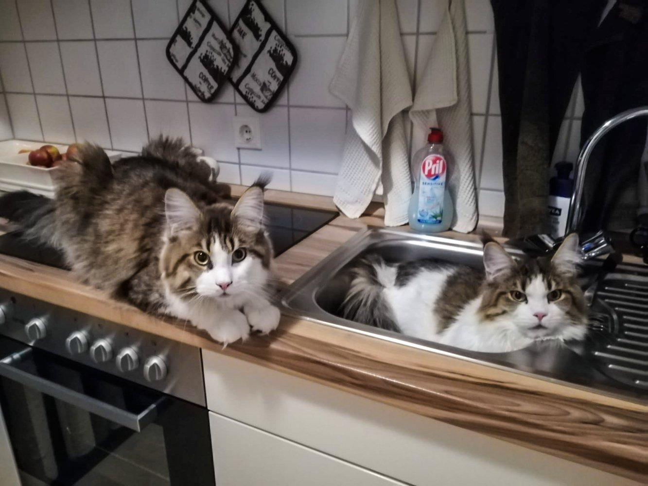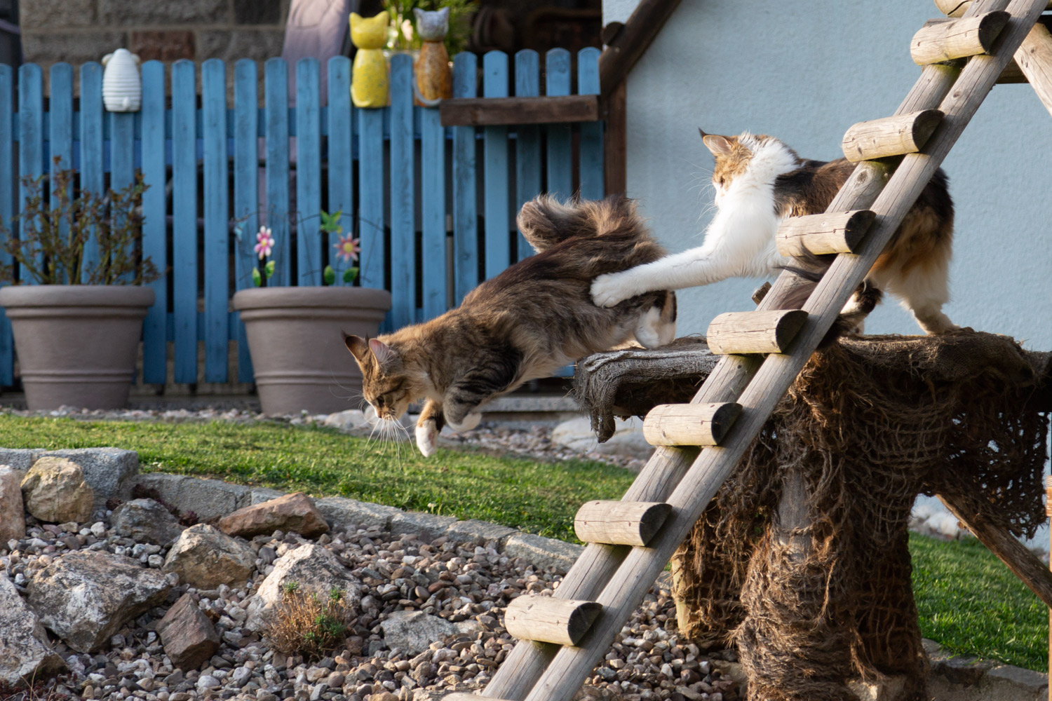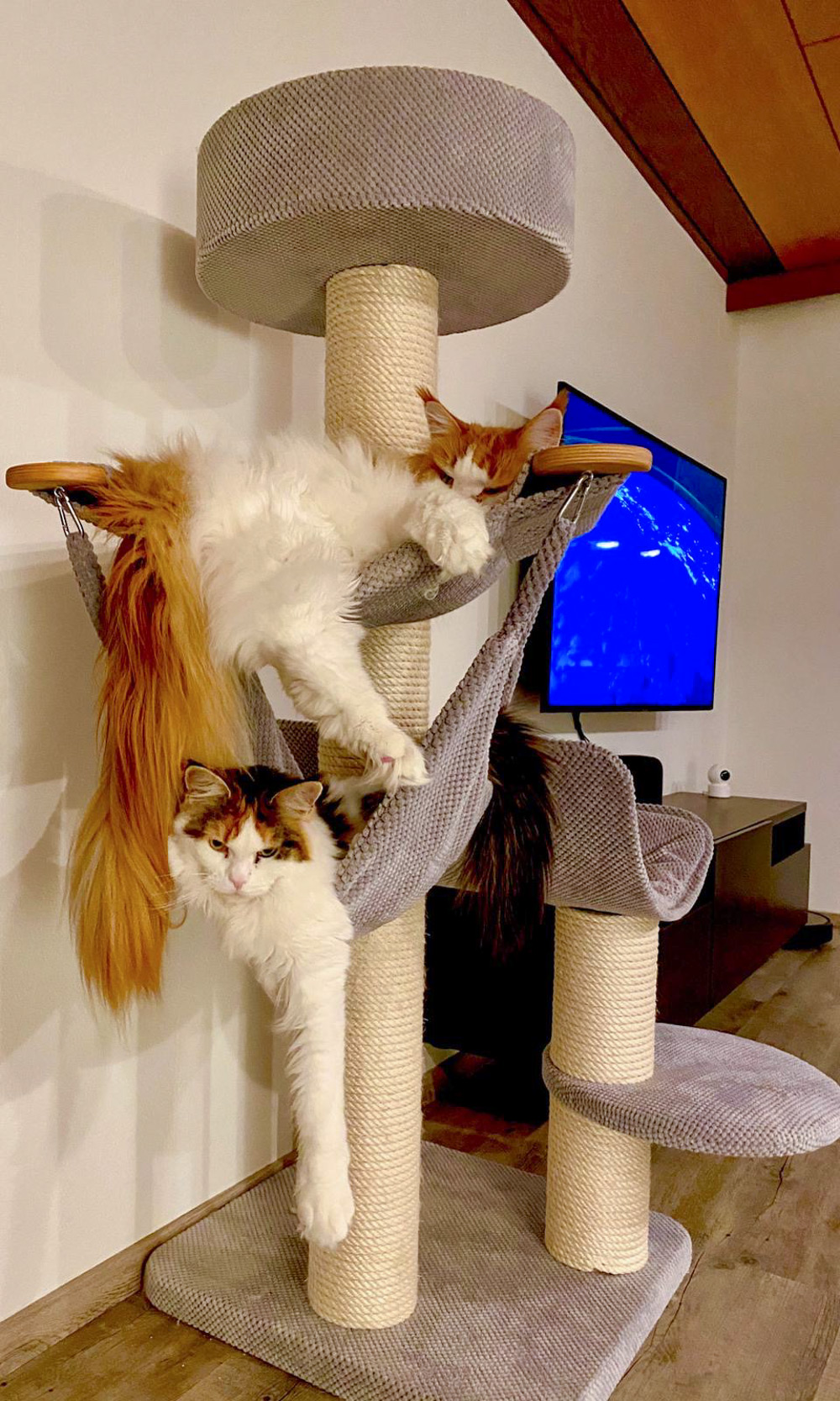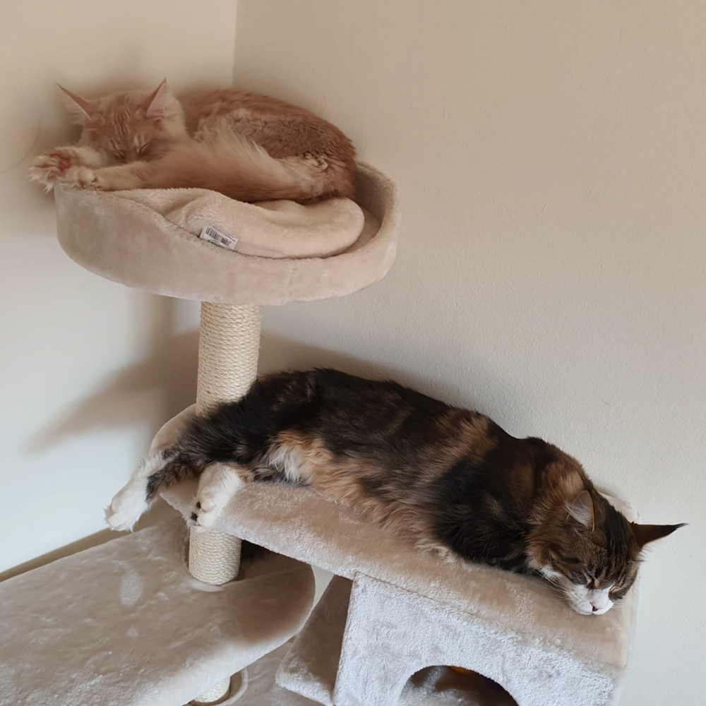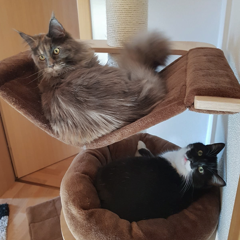 Bild von Adriano und Wendy zusammen auf dem Kratzbaum.