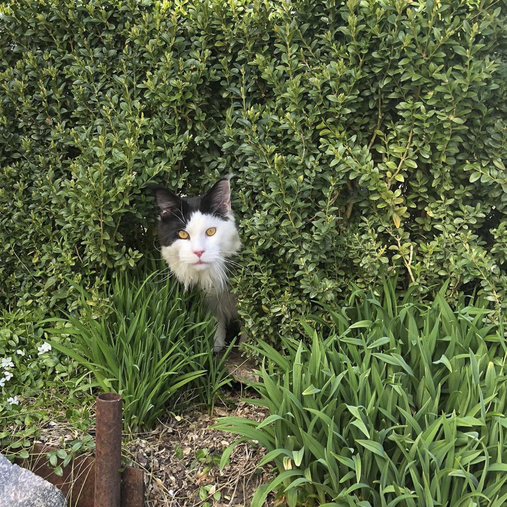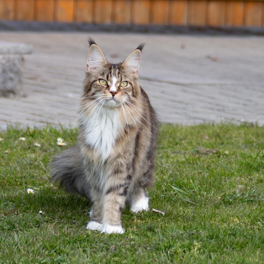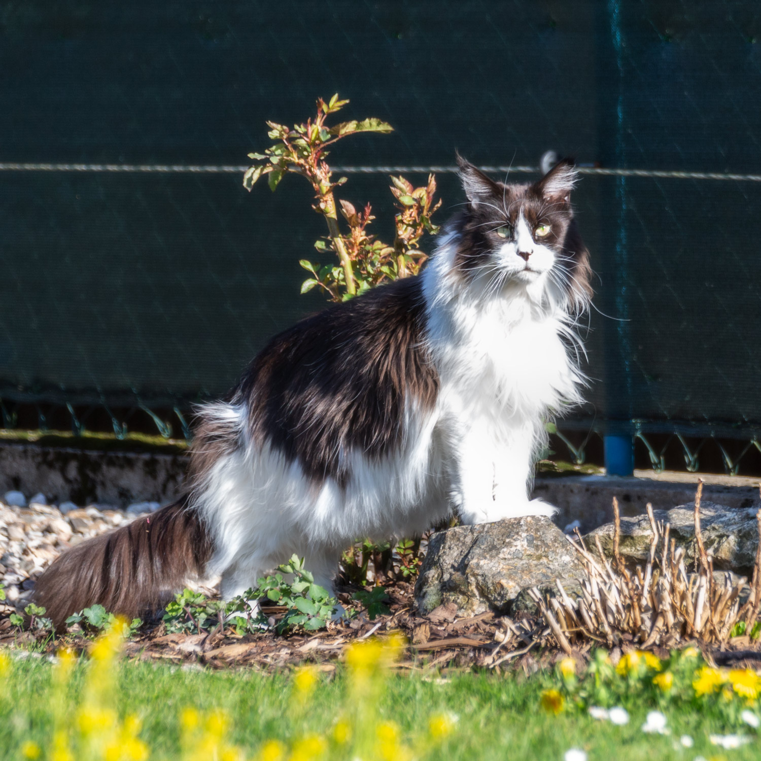 Rocky schaut sich um im Garten.
