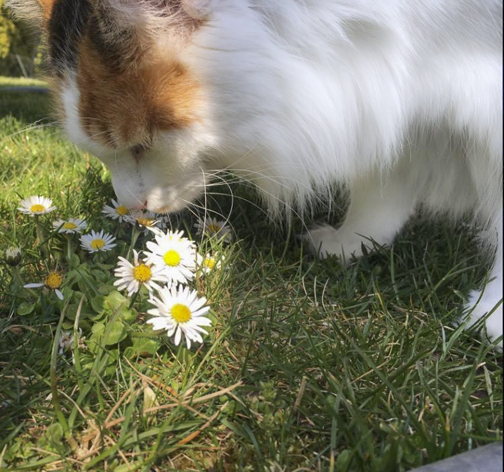 Schneeflöckchen" sehr neugierig jede Ecke und jeden Unterschlupf im Garten erkundet.