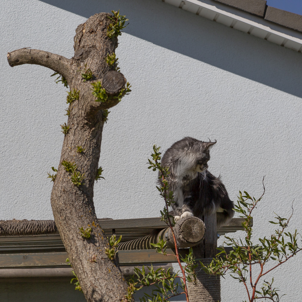 Rocky beobachtet vom Ahornbäumchen aus, wie unser "