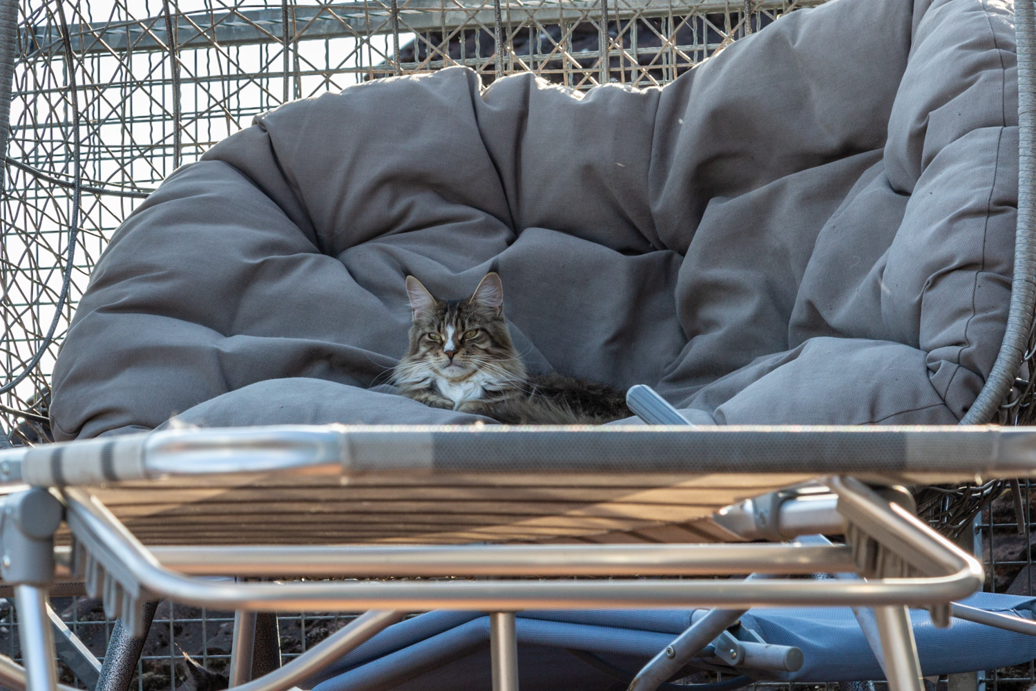 Annabel im Halbschlaf in der Hängewandschale.