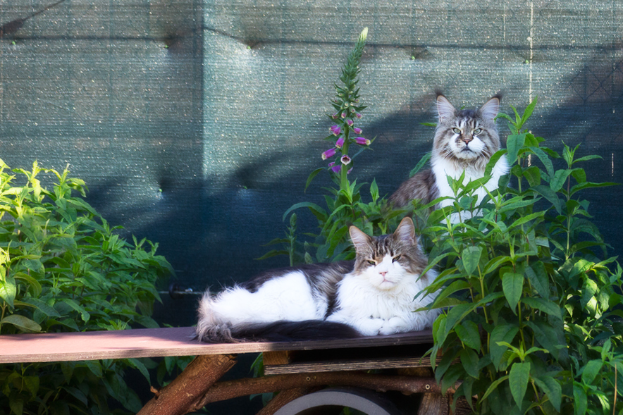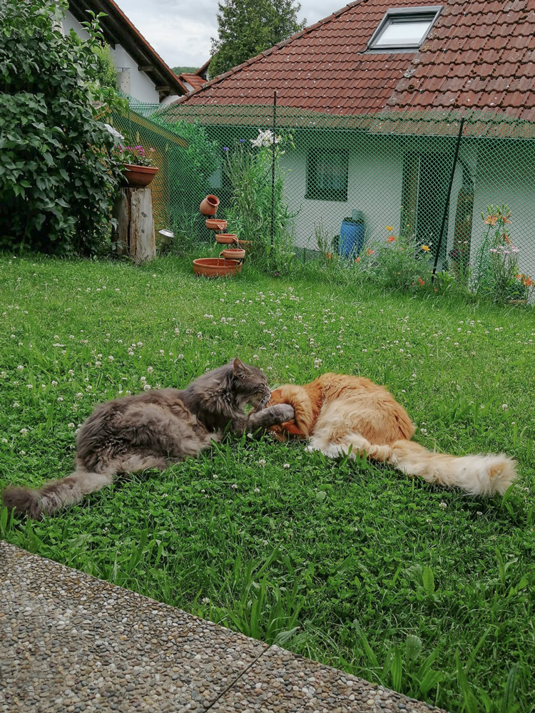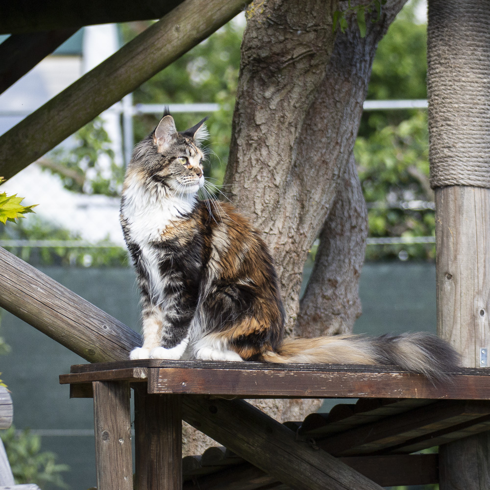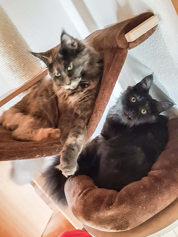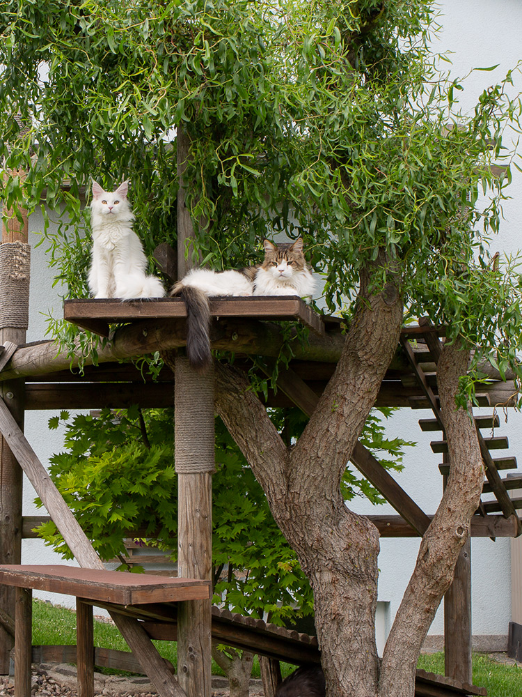 zusammen mit Ice Queen auf dem Außenkratzbaum.