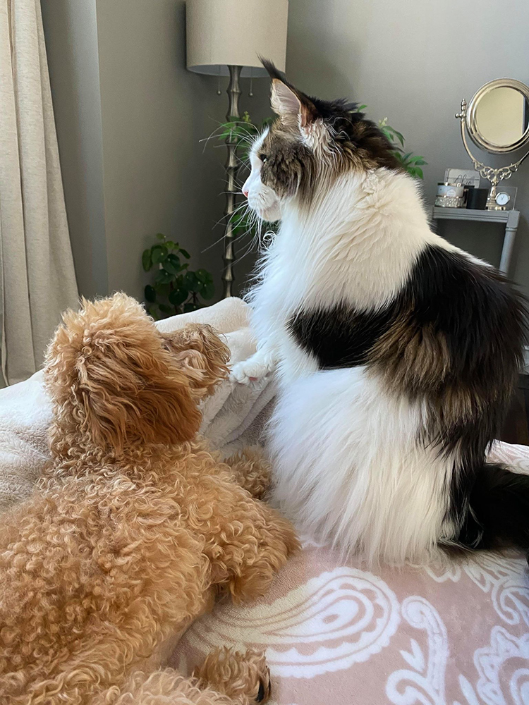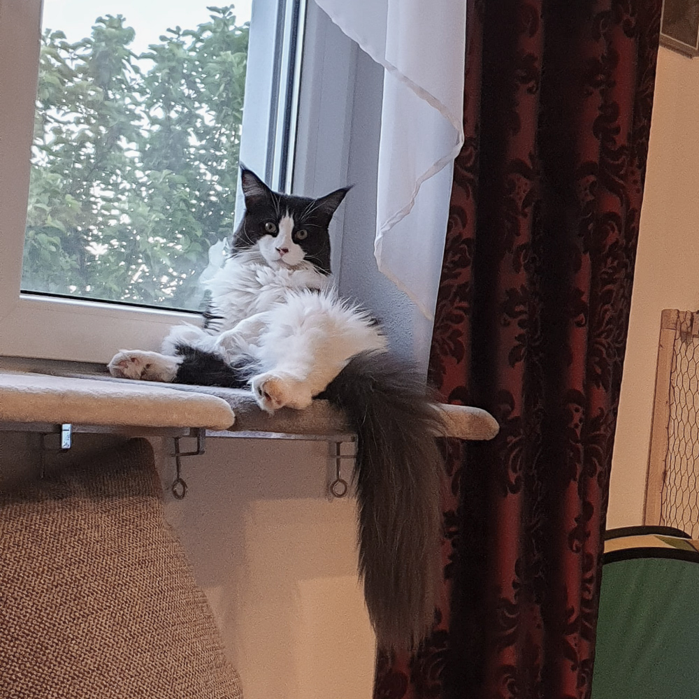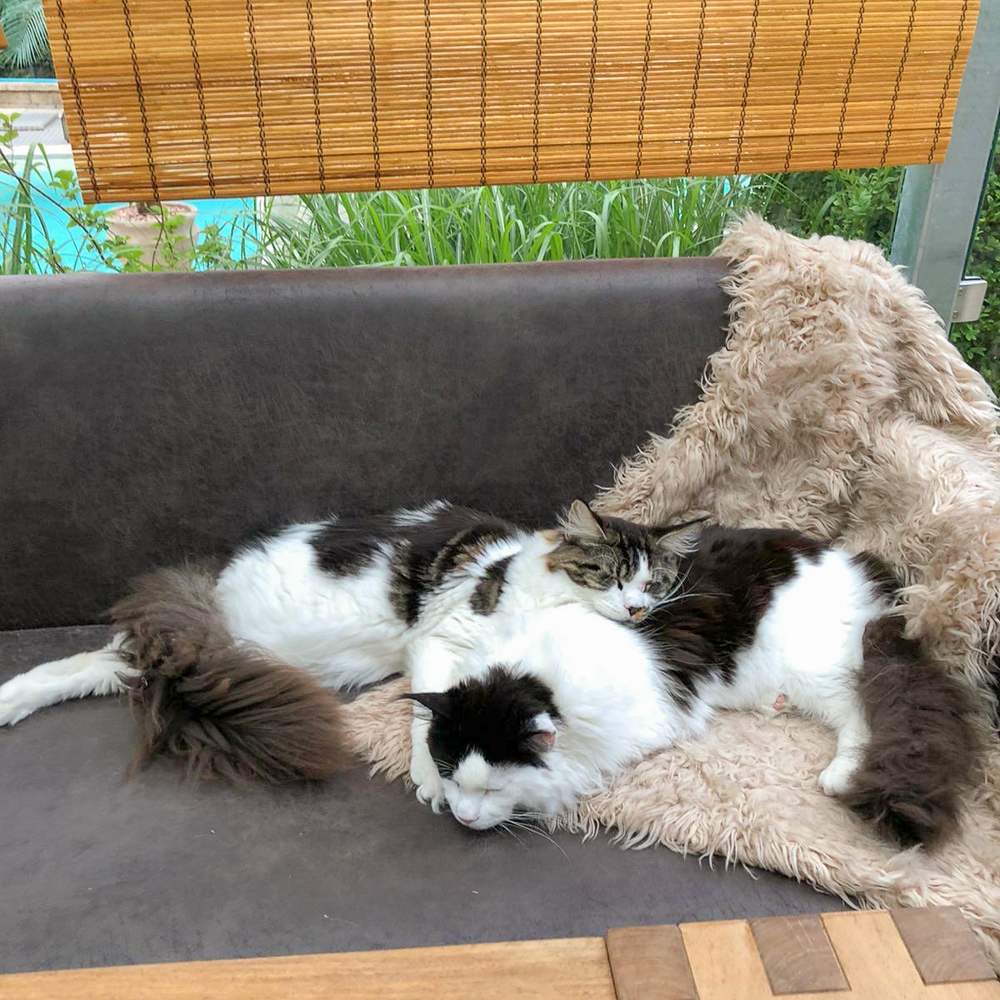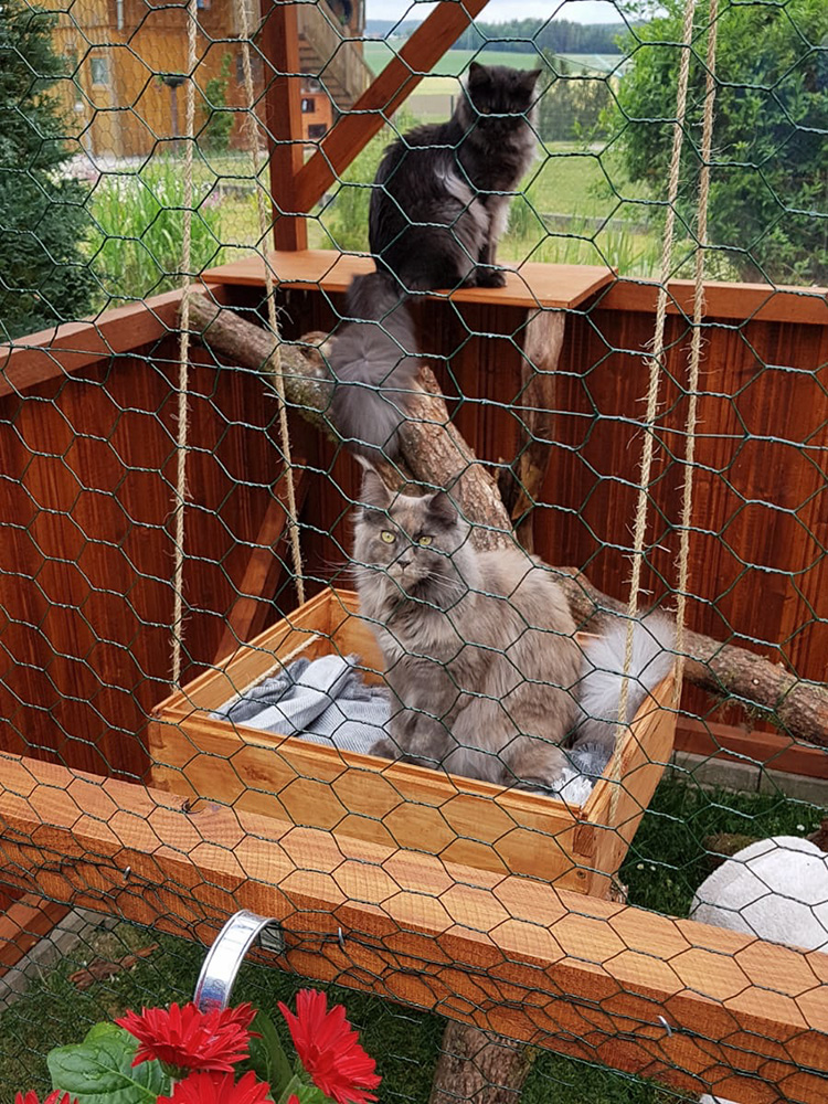 zusammen mit Ice Queen auf dem Außenkratzbaum.