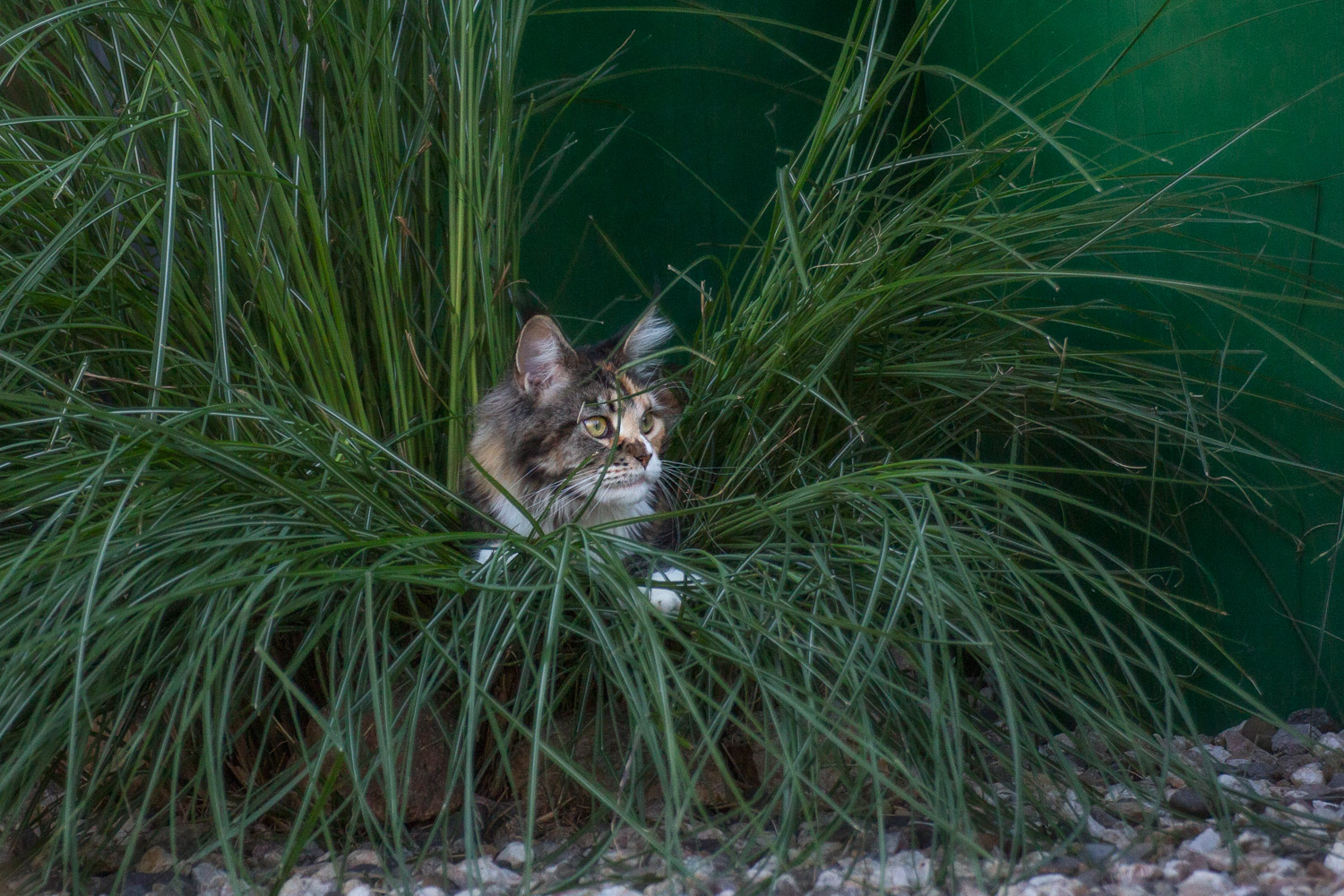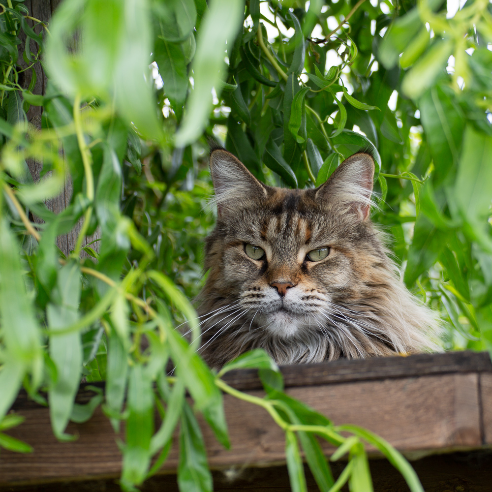 Cecil hat ein schönes Versteck unter der Hängeweide.