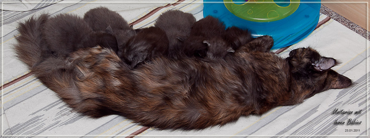 Unitarian mit "ihren Kindern" beim Frühstück. Neue Bilder der kleinen Bande sind eingestellt. Der D-Wurf ist heute 5 Wochen alt - neue Bilder sind online.