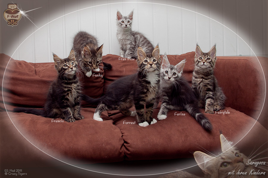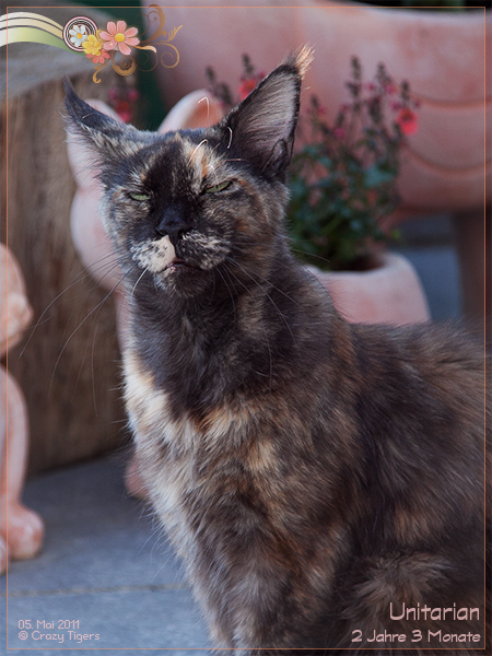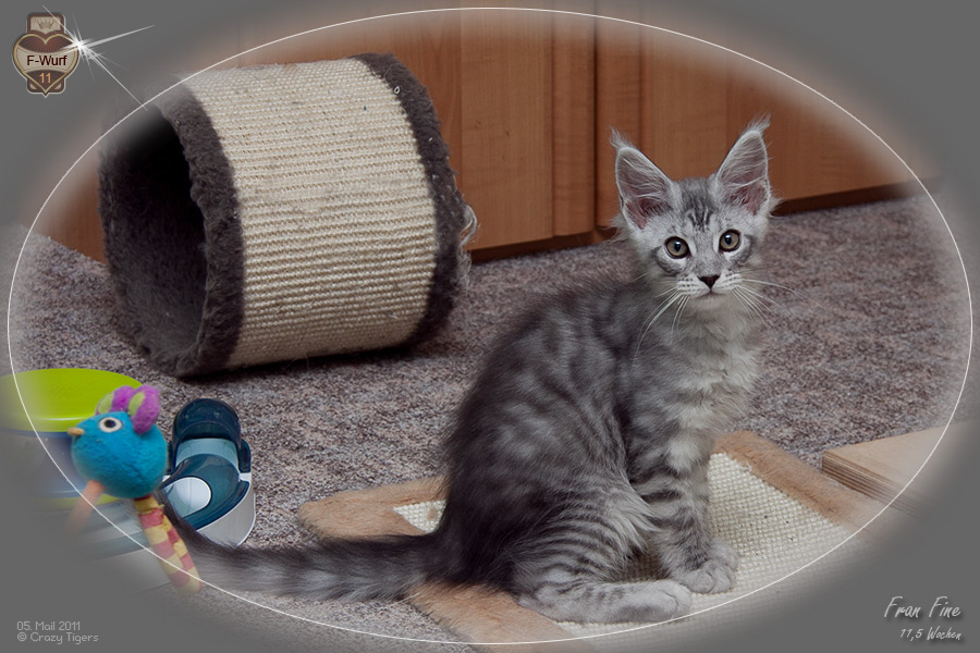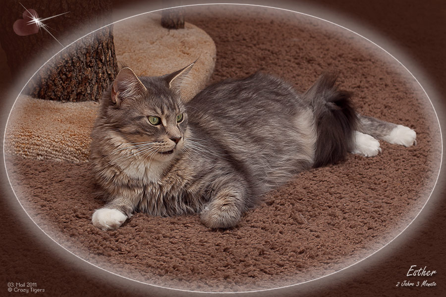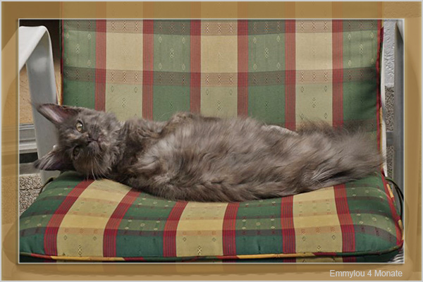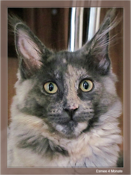 Esmee entwickelt sich prächtig und man kann die Ähnlichkeit zu ihrer Mama schon toll erkennen. Danke an Peggy & Sven und den "Maine Coon of Great Falls" für die Bilder.
