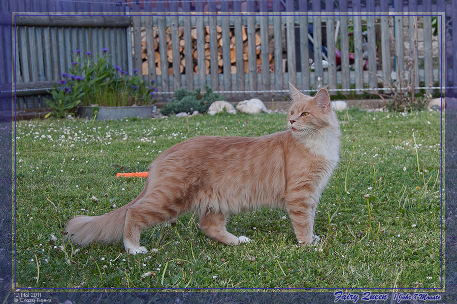 Bei diesem schönen Wetter ist unsere Katzentruppe den ganzen Tag im Garten unterwegs. Fairy Queen hält gerne für ein Foto still.