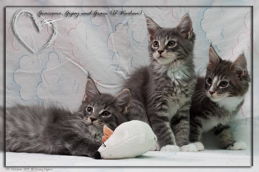 Dreierpack - Giaccomo, Gipsy und Grace mit 12 Wochen.