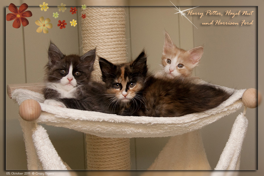 Dreierpack - Harry, Hazel und Harrison mit 9 Wochen.