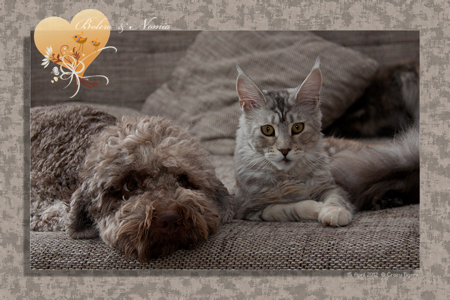 Ein ganz besonderes Paar - Bolero liebt "seine Nomia" und liegt sehr oft an ihrer Seite.