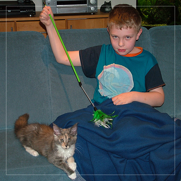 Kareem fühlt sich bei Birgit und ihrer Crew "Oceancrys Maine Coon" schon pudelwohl. Katie ist heute bei Anita und Robert eingezogen.