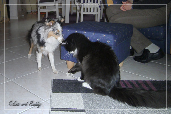 Doris schickt uns ein Bild von Buddy (Heath Ledger) mit seiner "neuen Freundin Selina". Ein Grußbild von uns an Tanja - Kiss Me fühlt sich sehr wohl auf unserer Couch.