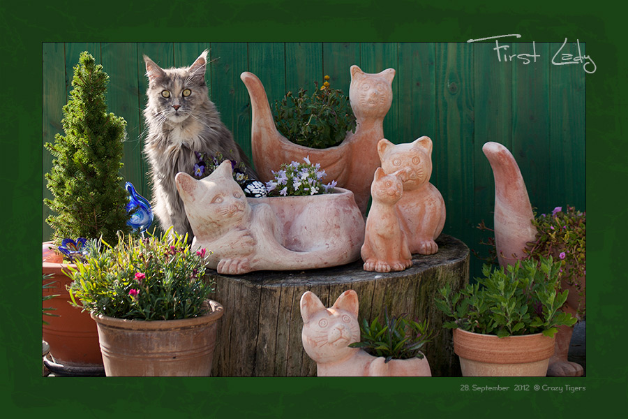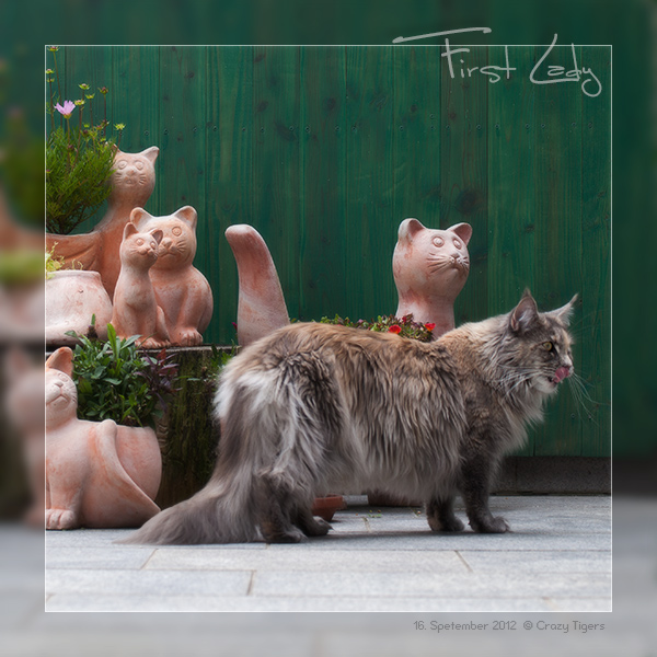 First Lady gefällt es zwischen den Terracotta-Katzen. Robert schickt uns ein Bild von den F-Brüdern