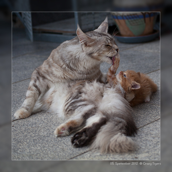 Lenny läßt sich von Nomia die Füsschen waschen.