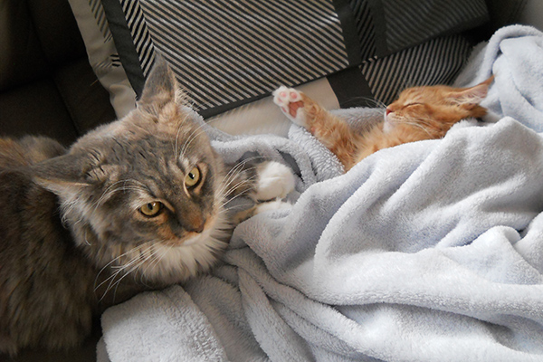 Saragosa liegt entspannt auf der Wohnzimmercouch. Ein Bild vom Dreamteam ("