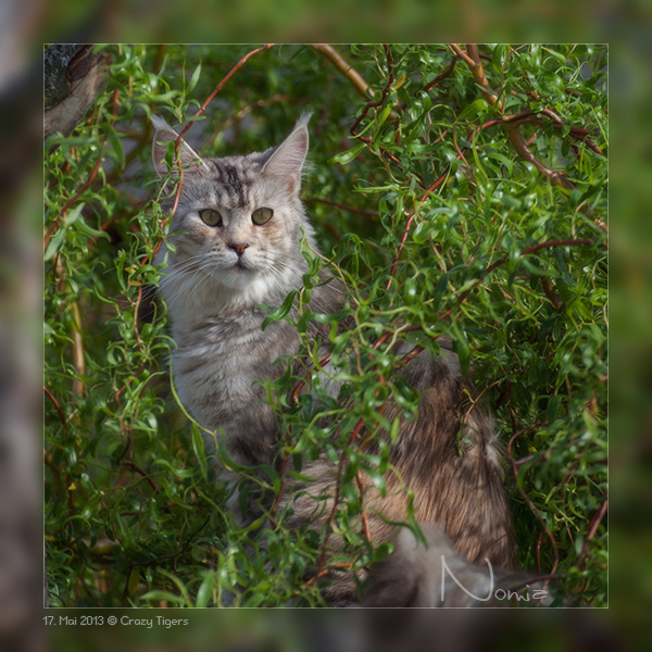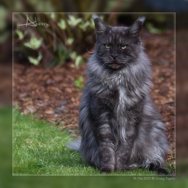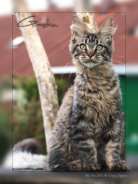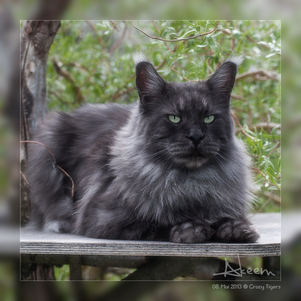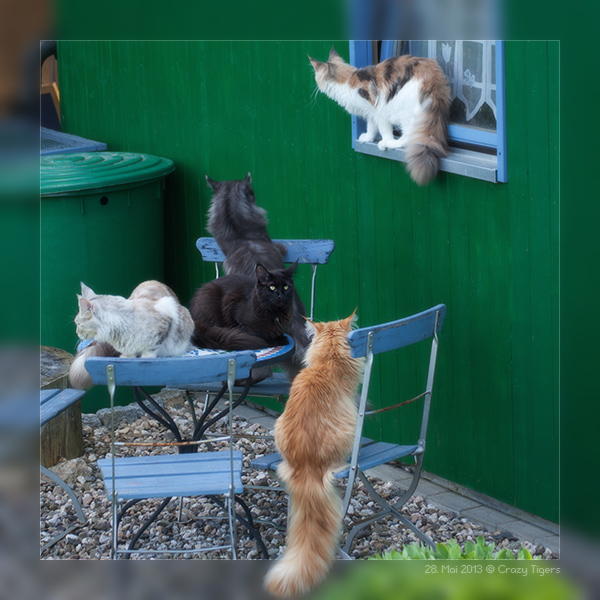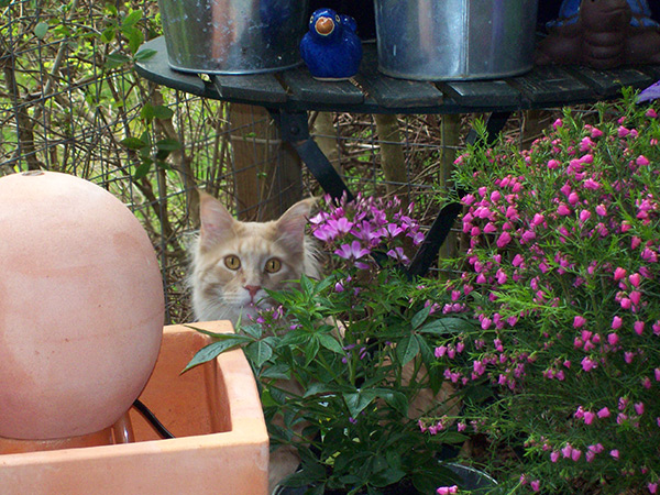 Gaston, auf dem Gartenkratzbaum.