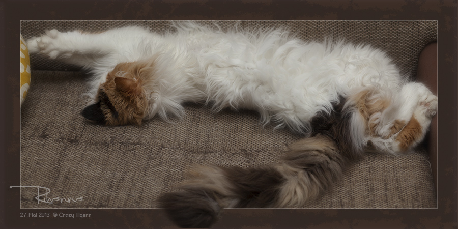 Bei diesem "Sauwetter" liegt auch Candy Kiss faul und lustlos in der Kratzbaumschale.