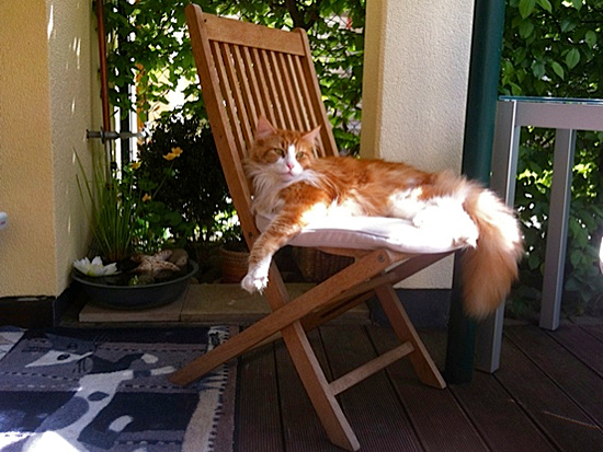 dieses Bild - Humphrey genießt die Balkonsonne.